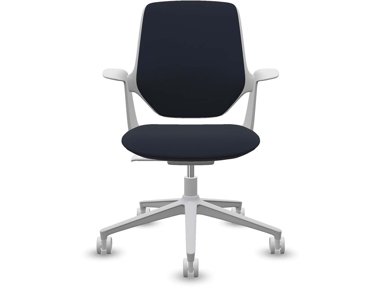 Dieser Bürodrehstuhl sorgt im Homeoffice oder im Büro für komfortablen Sitzkomfort am Schreibtisch. Er ist mit einer Synchronmechanik mit automatischer Federkrafteinstellung versehen. Im Design überzeugt der Drehstuhl mit unkompliziertem Design und klarer Formensprache. Dadurch passt er in jede Räumlichkeit. Stabilität und Langlebigkeit entstehen durch das fünfarmige Fußkreuz. Der Bürodrehstuhl verfügt über praktische Armlehnen.