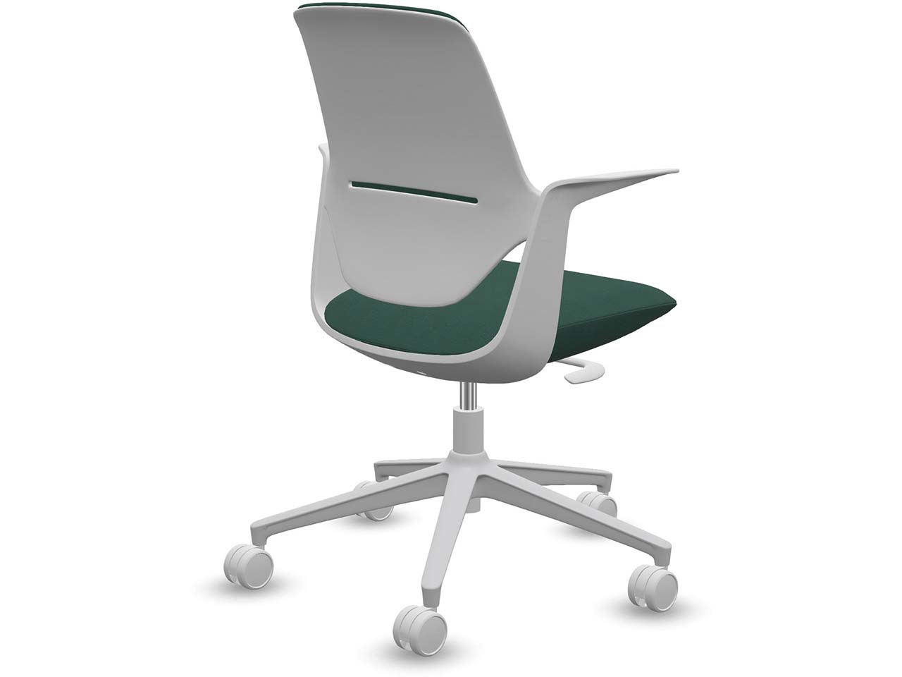Dieser Bürodrehstuhl sorgt im Homeoffice oder im Büro für komfortablen Sitzkomfort am Schreibtisch. Er ist mit einer Synchronmechanik mit automatischer Federkrafteinstellung versehen. Im Design überzeugt der Drehstuhl mit unkompliziertem Design und klarer Formensprache. Dadurch passt er in jede Räumlichkeit. Stabilität und Langlebigkeit entstehen durch das fünfarmige Fußkreuz. Der Bürodrehstuhl verfügt über praktische Armlehnen.