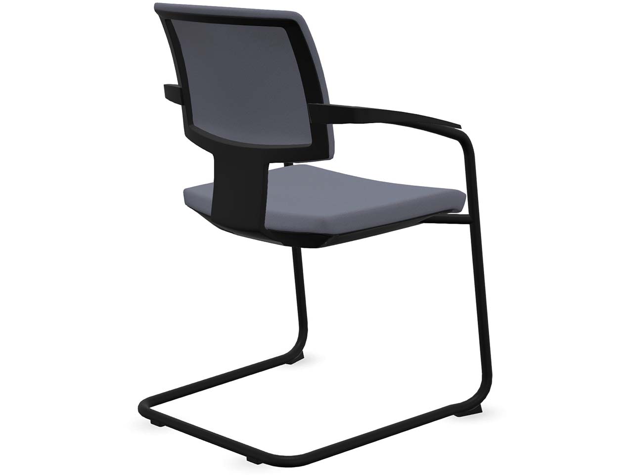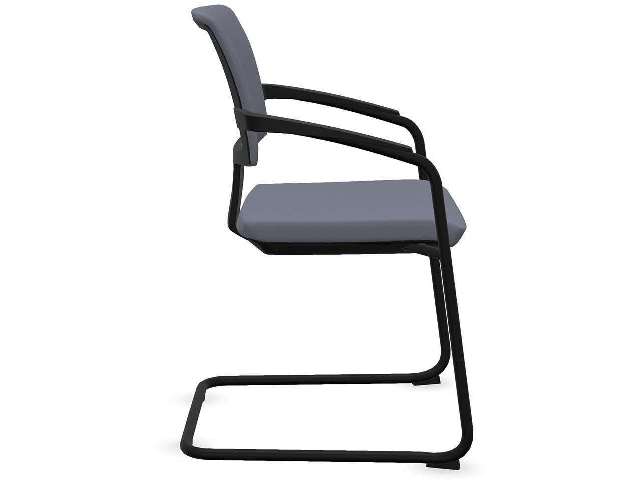 Moderner Stil kombiniert mit ergonomischem Komfort: Dieser formschöne Freischwinger überzeugt durch gepolsterte Sitz- und Rückenflächen sowie eine integrierte Unterstützung im Lendenbereich. Dadurch entsteht ein besonders angenehmer Sitzkomfort. Der stapelbare Stuhl für Konferenz- und Seminarräume passt sich optimal der Körperkontur an und ist zusätzlich mit funktionalen Armlehnen ausgestattet.