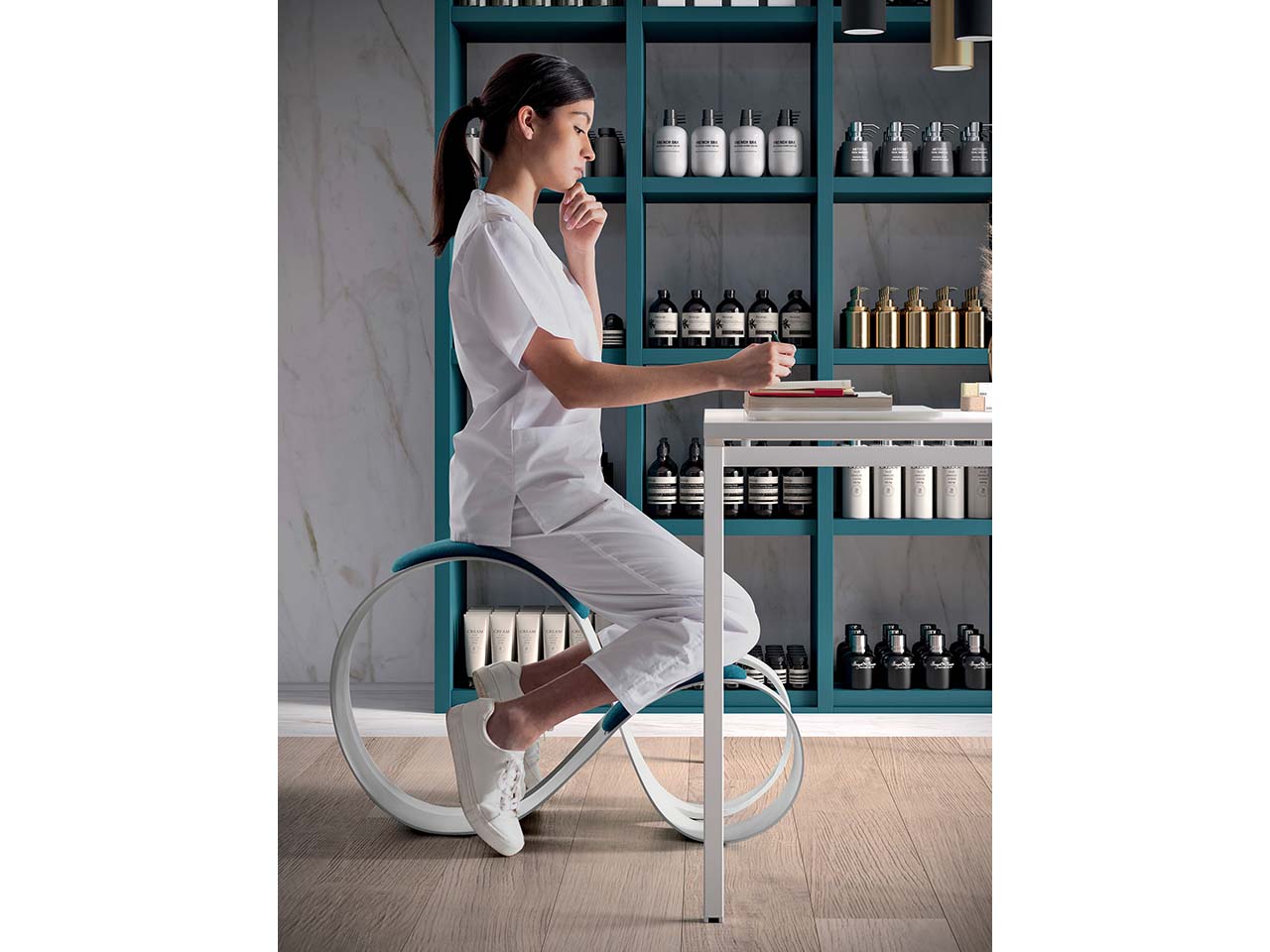 Dieser Kniehocker steht nicht nur für Wohlbefinden und verbessert die Körperhaltung, sondern er ist auch ein echtes Designobjekt. Die einzigartige, durchgehende Struktur erinnert in seiner Form an Unendlichkeit. Dabei überzeugt der Stuhl mit perfekt ausgeklügelter Ergonomie, die den Körper in eine natürlichere Haltung bringt und viel Leichtigkeit vermittelt. Das Konzept hinter dem Kniehocker sorgt dafür, dass der Körper ständige Schwingbewegungen erfährt. Der ergonomische Hocker ist so gestaltet, dass sich das Gewicht auf weniger empfindliche Bereiche wie etwa die Knie verteilt, sodass die Wirbelsäule entlastet wird. Dazu sind nicht verformbare Neoprenpolster an der Sitzfläche und den Knieablagen angebracht, die den Komfort noch weiter erhöhen. Der raffinierte, dynamische Style des Stuhls ist eine perfekte Ergänzung für das Arbeitszimmer, das Homeoffice, das Büro oder sogar das Klassenzimmer. Sitzhöhe 52 cm.