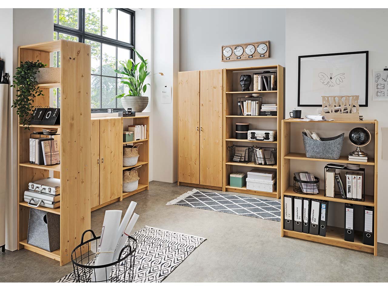 Das Regal "Greta" aus Kiefernholz ist hochwertig verarbeitet, sehr stabil und langlebig. Es eignet sich mit den 4 in der Höhe verstellbaren Fachböden für Bücher, Ordner und mehr. Das Regal ist flexibel einsetzbar und passt in verschiedene Wohnräume. Erhältlich in weiß (gebeizt) oder gelaugt und geölt. B 60 x T 29 x H 186 cm.