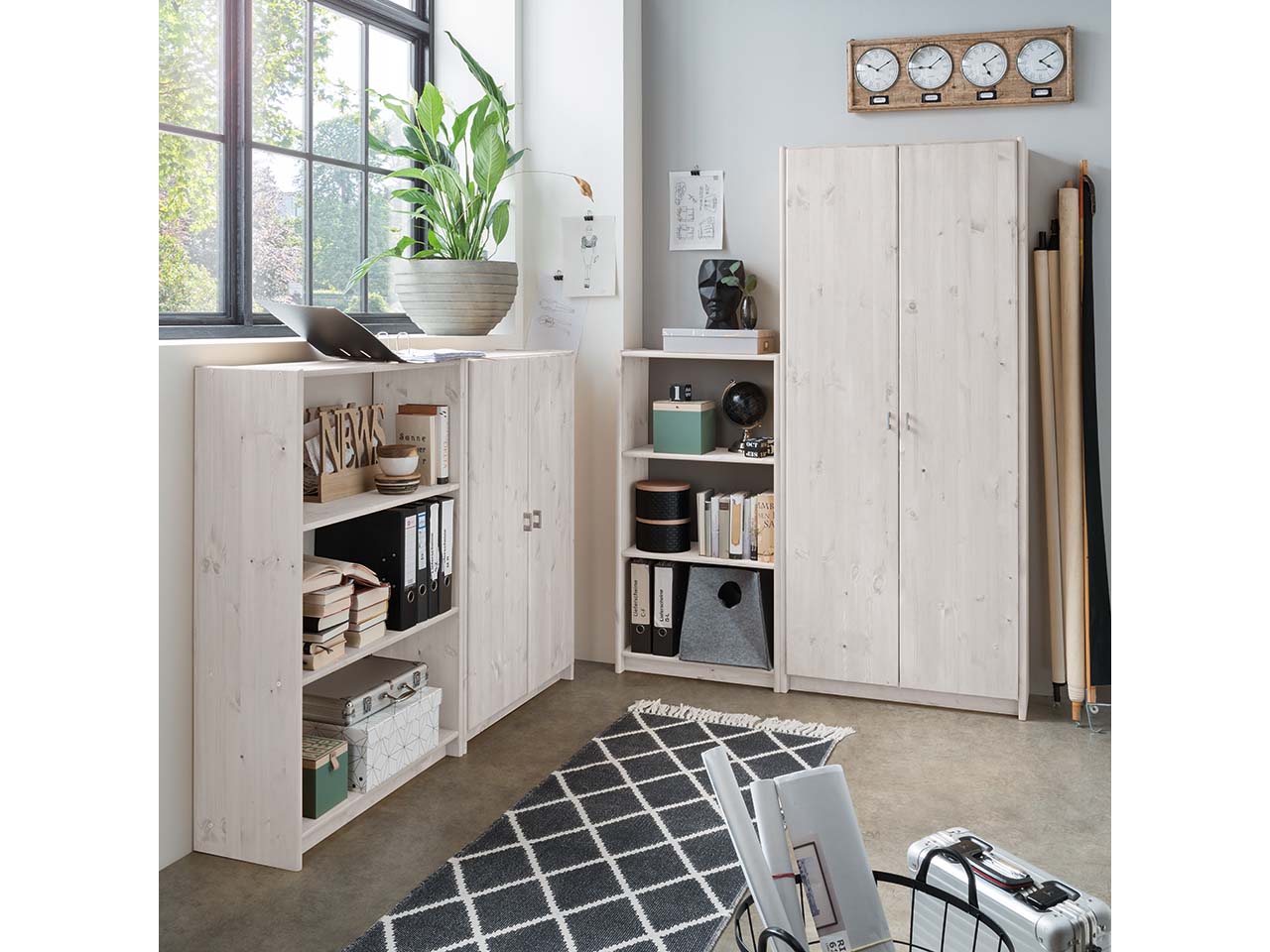 Das Regal "Greta" aus Kiefernholz ist hochwertig verarbeitet, sehr stabil und langlebig. Es eignet sich mit den 4 in der Höhe verstellbaren Fachböden für Bücher, Ordner und mehr. Das Regal ist flexibel einsetzbar und passt in verschiedene Wohnräume. Erhältlich in weiß (gebeizt) oder gelaugt und geölt. B 80 x T 29 x H 186 cm.