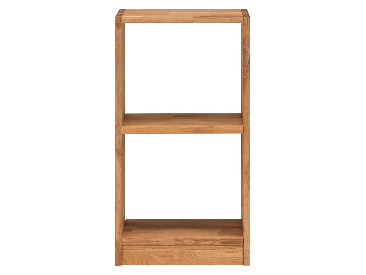 Das Regal "Grid" wird aus FSC-zertifizierter, massiver Wildeiche gefertigt. Die Holzoberfläche ist Öl auf Pflanzenbasis geölt.