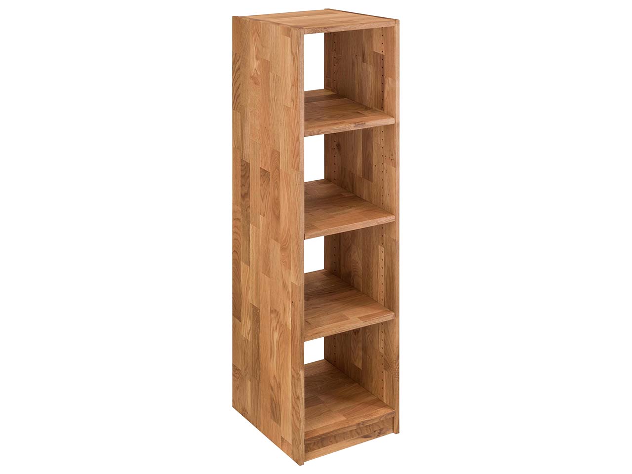 Das Regal "Grid" wird aus FSC-zertifizierter, massiver Wildeiche gefertigt. Die Holzoberfläche ist Öl auf Pflanzenbasis geölt.