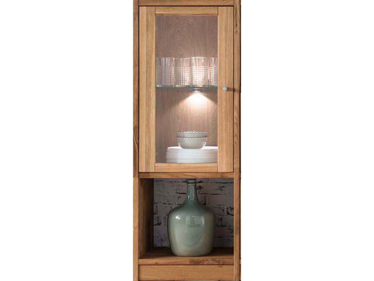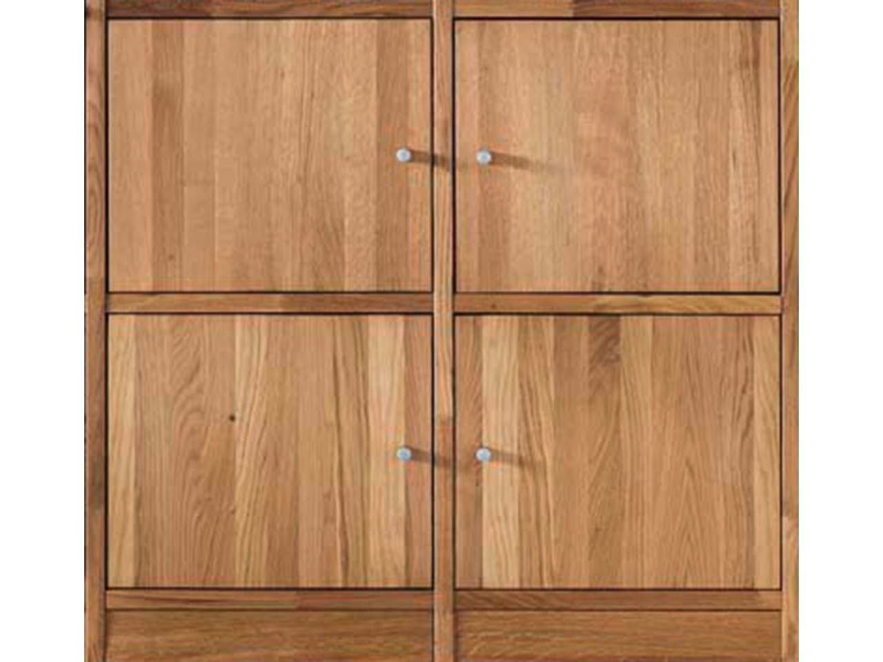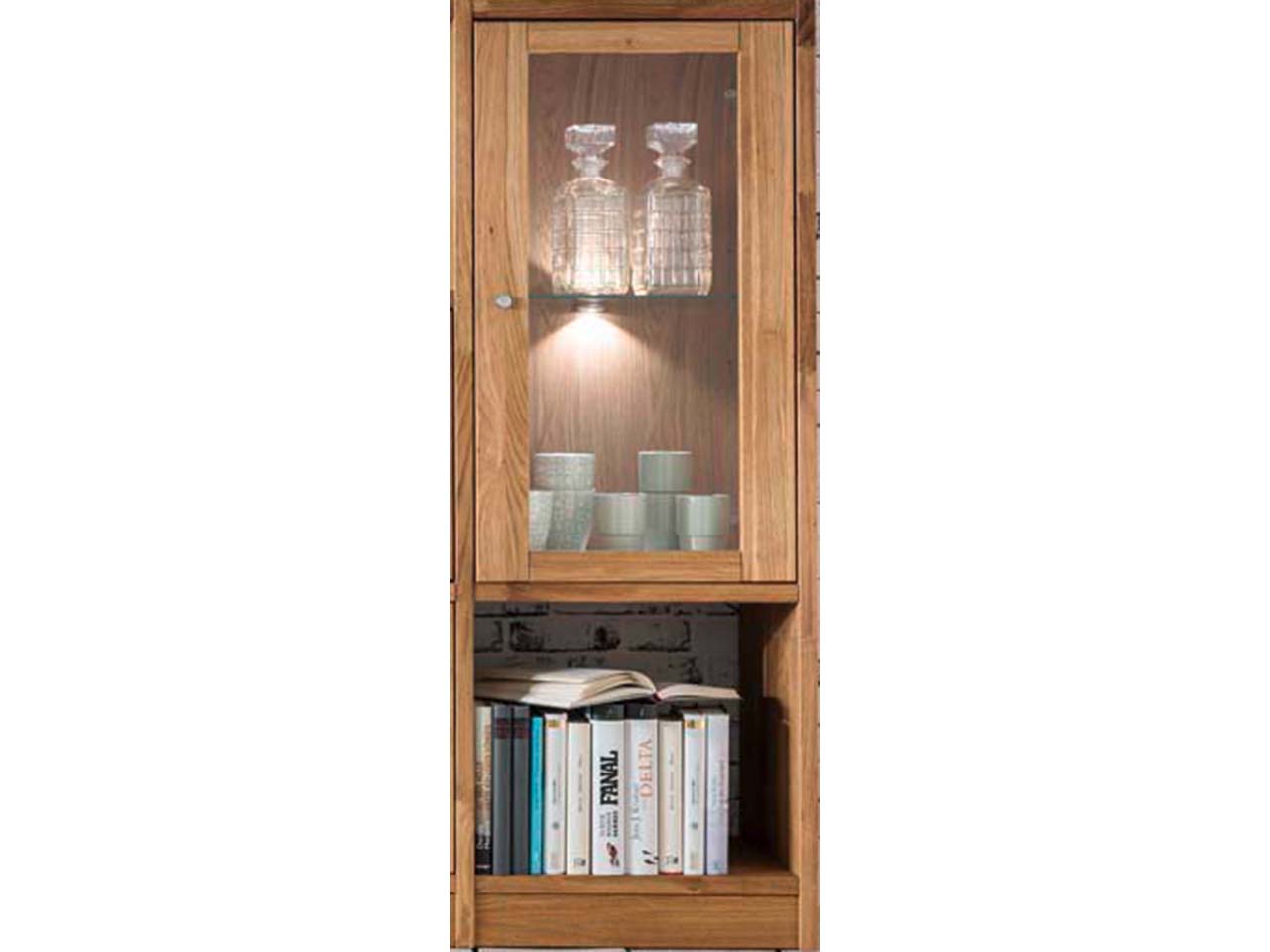 Stauraum in perfekter Ausführung für Ihren Wohnbereich! Das Regal mit vier offenen Fächern, zwei Glas- und 4 Holztüren bietet viel Platz. Das Möbelstück aus massiver Wildeiche in exzellenter Verarbeitung zeigt sich in einem schlichten, klaren Design, das jeden Raum bereichert. Die wunderschöne Maserung sorgt für eine sehr natürliche Optik. B 136 x T 34 x H 125 cm.