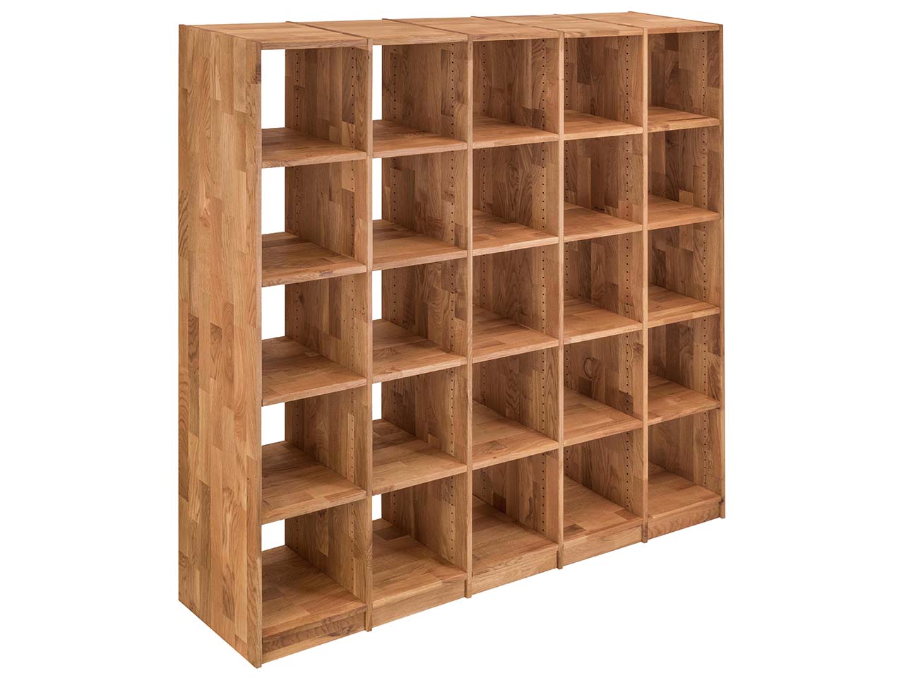 Das Regal "Grid" wird aus FSC-zertifizierter, massiver Wildeiche gefertigt. Die Holzoberfläche ist Öl auf Pflanzenbasis geölt.