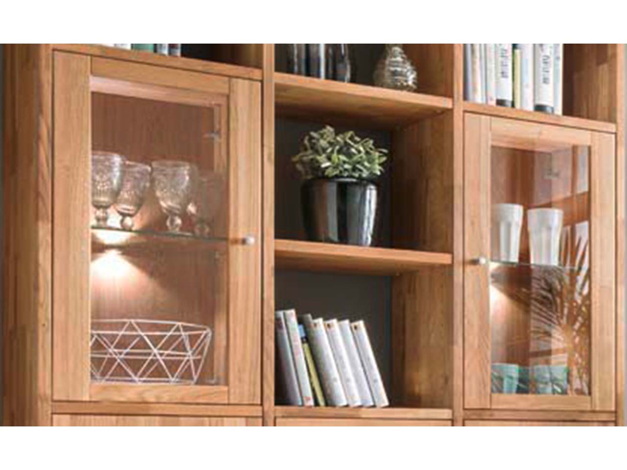 Dieses Regal bietet Ihnen viel Platz und großzügigen Stauraum! Das Möbelstück aus massiver, schön gemaserter Wildeiche ist mit vielen Fächern und zwei Schubladen ausgestattet. Es passt mit seinem schlichten, klaren Design perfekt ins Wohn-, Schlaf- oder Esszimmer. B 136 x T 34 x H 202 cm.