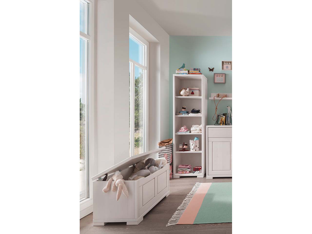 Viel Natürlichkeit steckt in diesem Regal aus massivem, FSC-zertifiziertem Kiefernholz. Das Holz verleiht dem Möbelstück nicht nur eine schöne Optik, sondern auch eine hohe Stabilität und Langlebigkeit. Die 4 Einlegeböden bieten Platz für Handtücher, Spielzeug, Bücher, Kleidung etc. Ideal für Kinder- und Babyzimmer! Das Regal ist in Weiß, Weiß/Provence oder gebeizt und geölt erhältlich. B 53 x T 39 x H 178 cm.