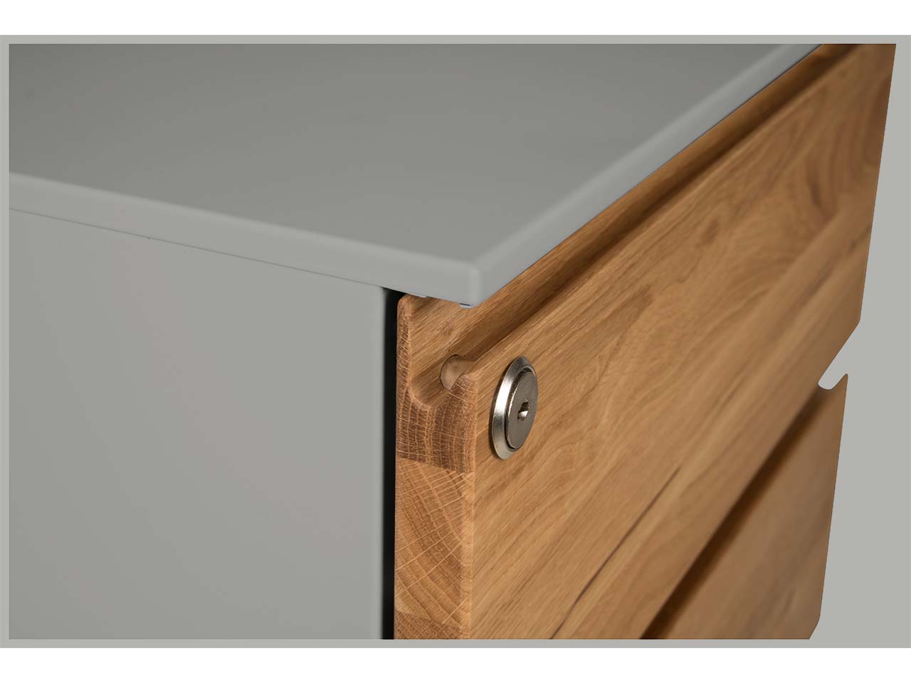 Der Rollcontainer ist perfekt für Homeoffice oder Büro, denn er ist stabil, modern design und einfach praktisch. Die 3 Schubladen mit soft-close sind ideal, um Dokumente, Unterlagen und mehr ordentlich unterzubringen. Optisch punktet der Rollcontainer mit der Kombination aus Natürlichkeit und Metall: Der Korpus besteht aus pulverbeschichtetem Stahl und die Fronten aus geöltem Massivholz. Zur Auswahl stehen hier Eiche, Birke, Buche oder Robinie. Durch die mit pflanzlichem Öl behandelte Oberfläche erhält das Holz eine wunderbare Haptik. Schubladen mit Teilauszug. B 42 x T 53,3 x H 55 cm.