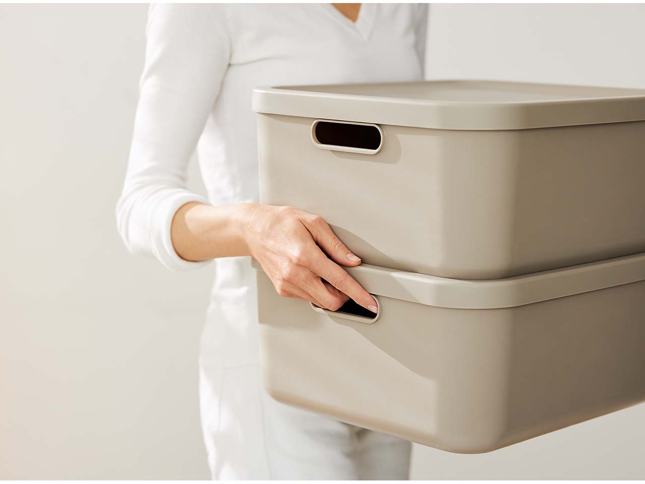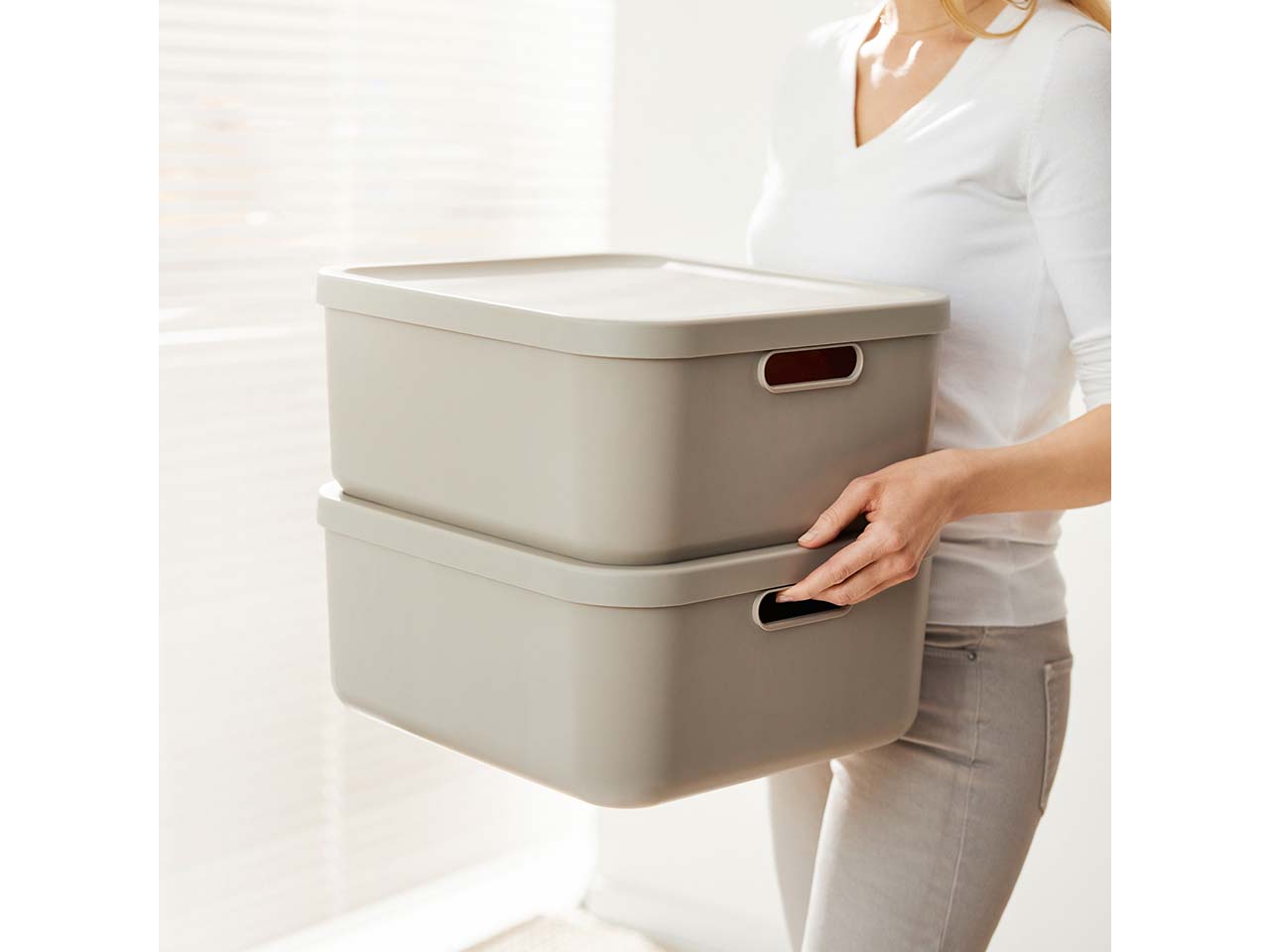 - Modern designte Aufbewahrungsbox mit offenen Griffen