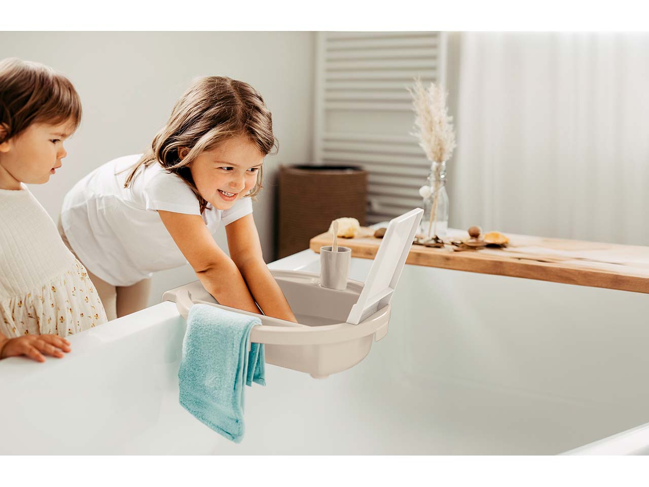 Hände waschen und Zähne putzen für die Kleinsten leicht gemacht! Das praktische Waschbecken aus recyceltem Kunststoff muss nur am Rand der Badewanne angebracht werden und schon haben Kinder ihr ganz eigenes Waschbecken mit Spiegel – dieser ist sogar unzerbrechlich. Platz für den Zahnputzbecher ist auf der Ablage, genauso wie für Seife. Am Haltegriff können Waschlappen oder Handtuch angebracht werden. Über den Ablaufstopfen ist das Wasser kinderleicht in die Badewanne abgelassen. Das Waschbecken ist für Kinder ab 12 Monaten geeignet. Für Badewannen mit einer Wannenrandbreite bis 8 cm. B 40 x T 40 x H 13 cm.