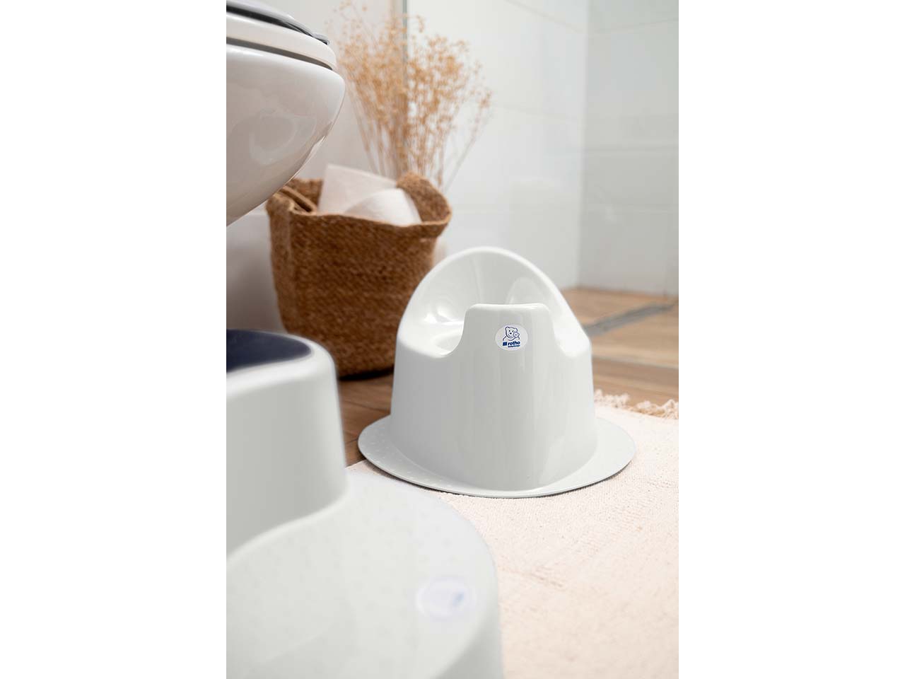 Das anatomisch und ergonomisch geformte Töpfchen aus Recyclingkunststoff ist perfekt, um Kinder von der Windel zu entwöhnen. Sie können damit einfach und spielerisch an das Thema herangeführt werden. Der Kindertopf mit Griffmulden am Rücken und standfestem Fuß kann ganz einfach überall mithingenommen und flexibel aufgestellt werden. Er bietet eine optimale Sitzhöhe und eine praktische Rückenlehne. Der erhöhte Spritzschutz sorgt dafür, dass wirklich nichts daneben geht. An dem Sitz mit matter Oberflächenstruktur klebt die zarte Kinderhaut nicht an – das erhöht den Sitzkomfort! B 31,2 x T 30,3 x H 21,1 cm.
