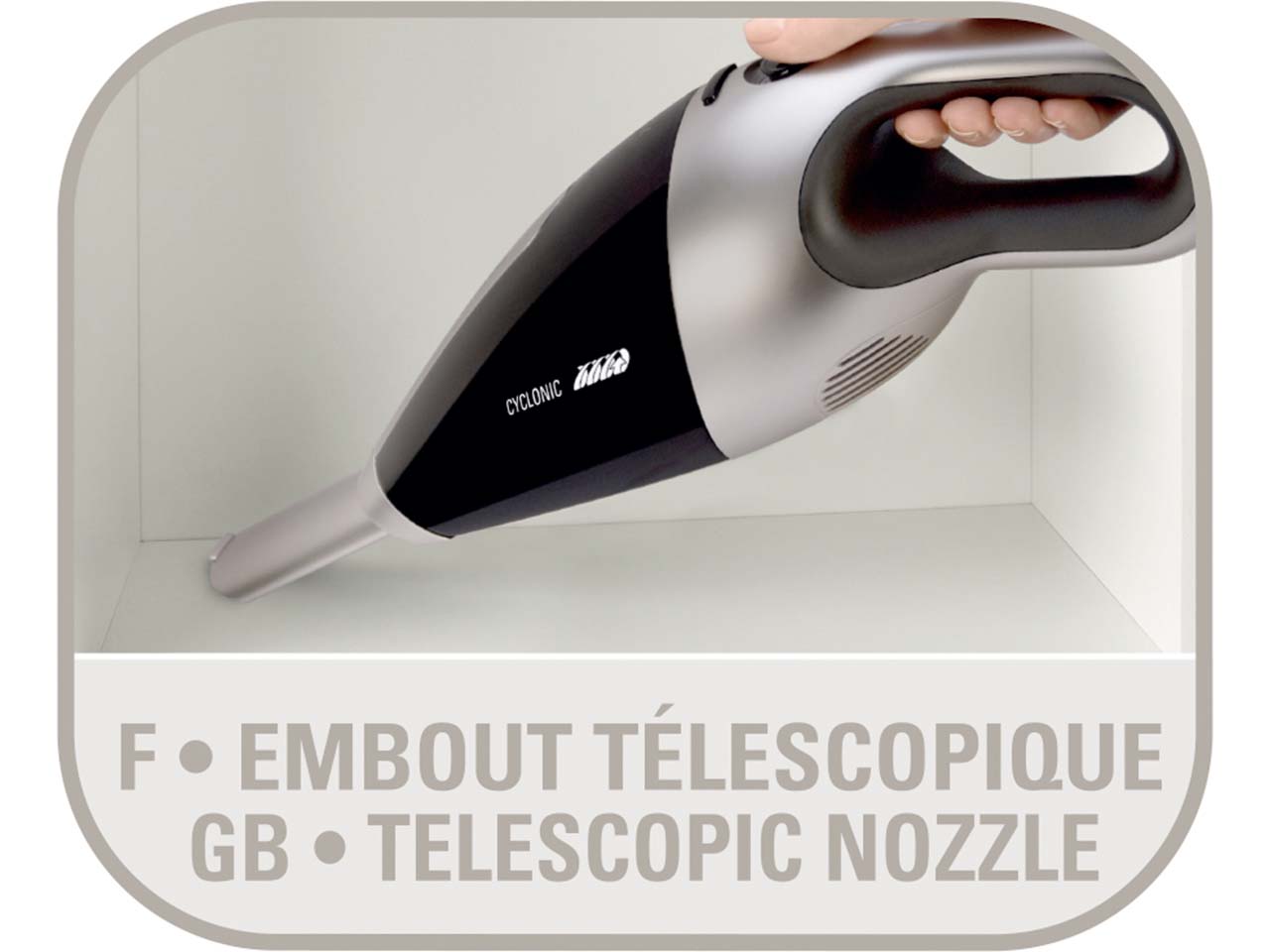 Dieser kompakte Akkustaubsauger ist zur Stelle, wenn mal etwas daneben geht. Krümel, ausgekippte Getränke oder Staub machen dem Handstaubsauger nichts aus. Der Nass- und Trockensauger mit integrierter Teleskopfugendüse nimmt bis zu 180 ml Flüssigkeit und bis zu 350 ml Staub auf. Im inneren verfügt der Sauger über einen waschbaren Dauerfilter. Die Ladestation und ein Zubehörfach sind in der Wandhalterung integriert.
