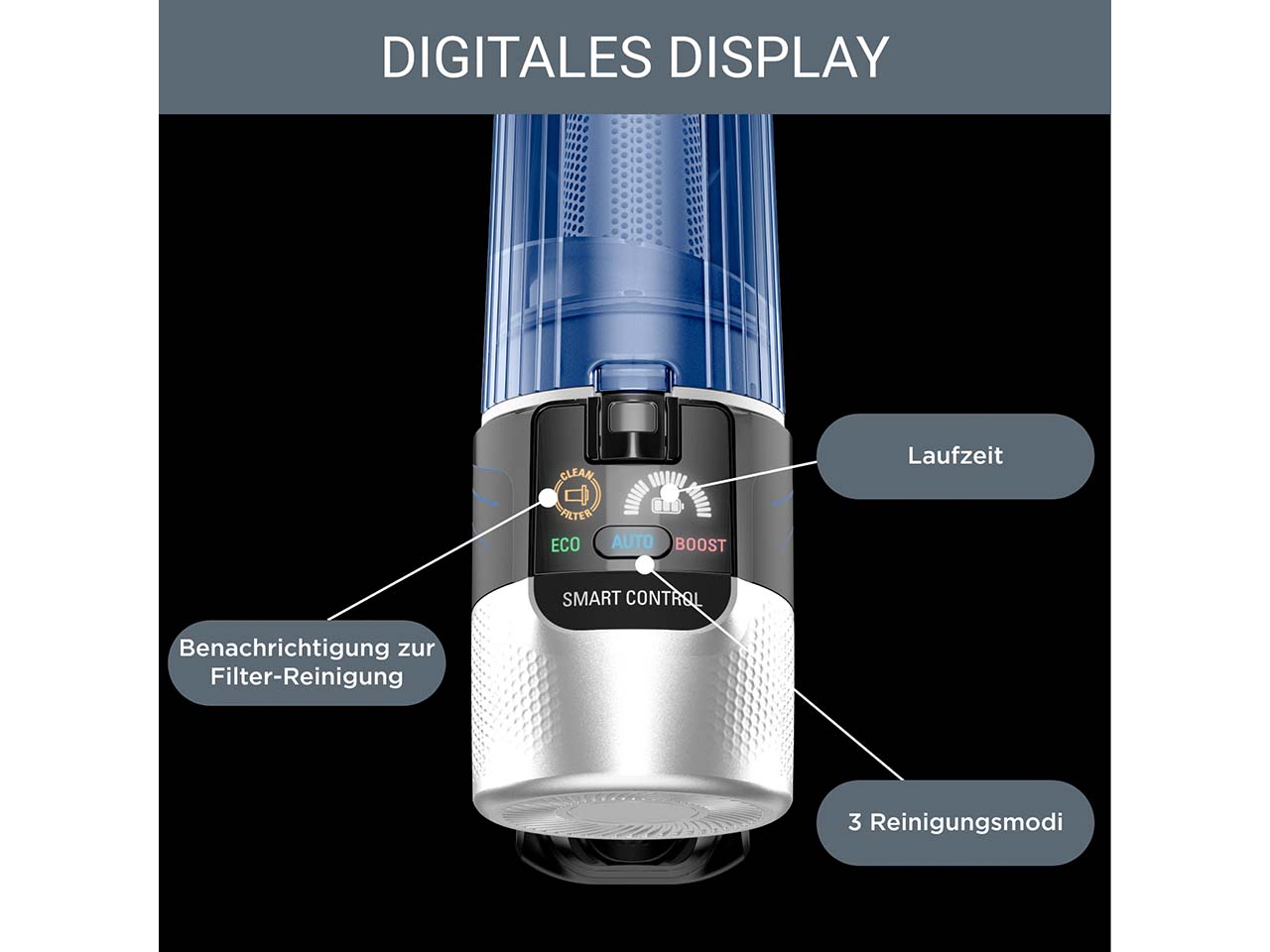 Dieser Akku-Stielstaubsauger vereint Leistung, Ausdauer und intelligente Technologie für eine neue Dimension der Bodenreinigung. Mit einer konstant starken Saugkraft und einer Akkulaufzeit von bis zu 60 Minuten ermöglicht er gründliche Reinigung ohne Unterbrechung. Die innovative 2-in-1 Aqua-Technologie saugt und wischt gleichzeitig für makellose Ergebnisse in einem Schritt. Dabei ist der Staubsauger modern designt und ultraleicht: Der Handstaubsauger wiegt gerade einmal 1,1 kg. Das Flex-Gelenk ermöglicht das Erreichen von schwer zugänglichen Stellen. Die LED-Düse zeigt den Staub in schwach beleuchteten Umgebungen auf. Das Smart Control Display und die automatische Saugkraftanpassung garantieren optimale Leistung auf allen Bodenarten. Das fortschrittliche, beutellose Filtersystem entfernt 99,9 % Feinstaub, Allergene und Staubmilben.