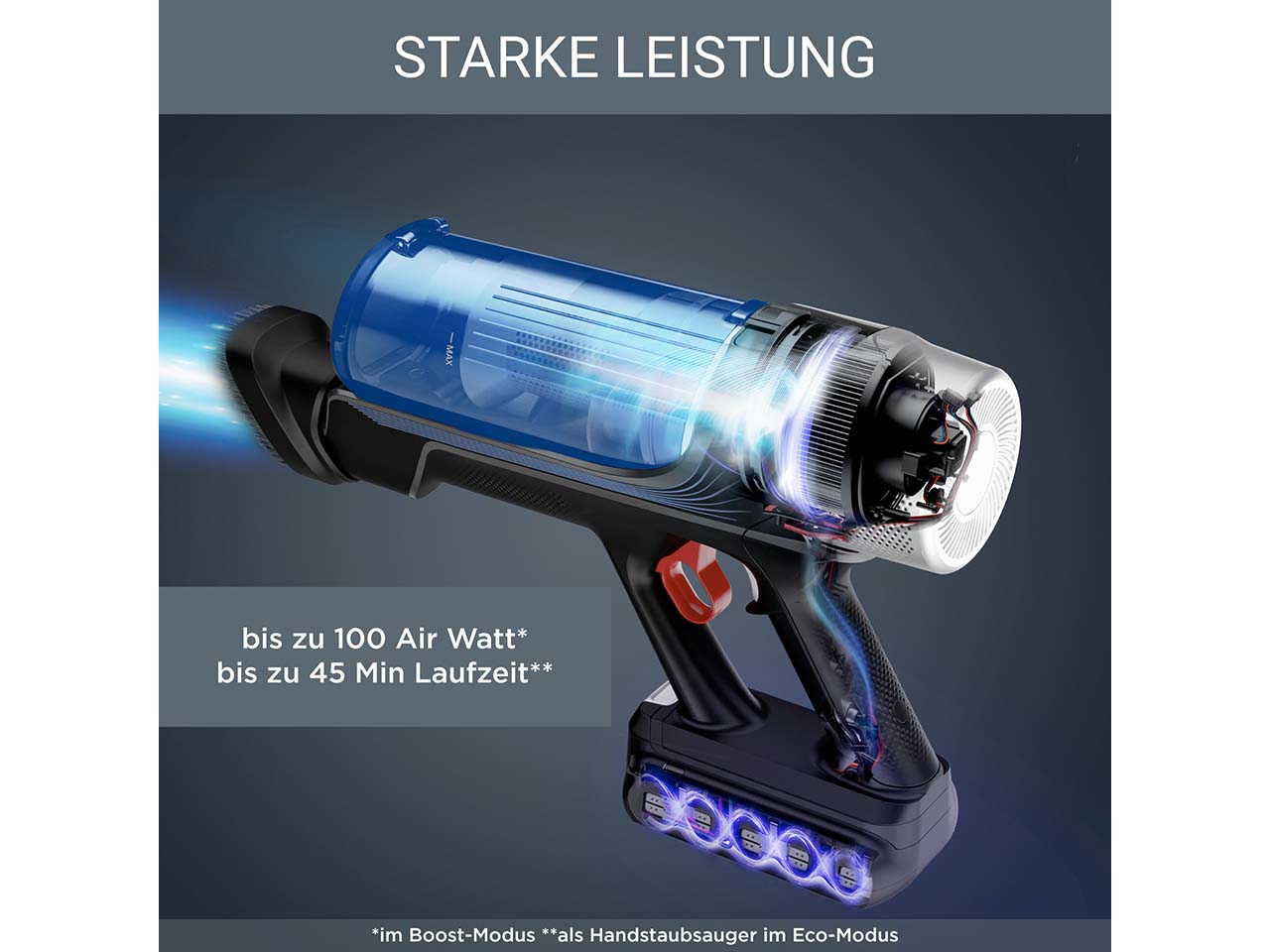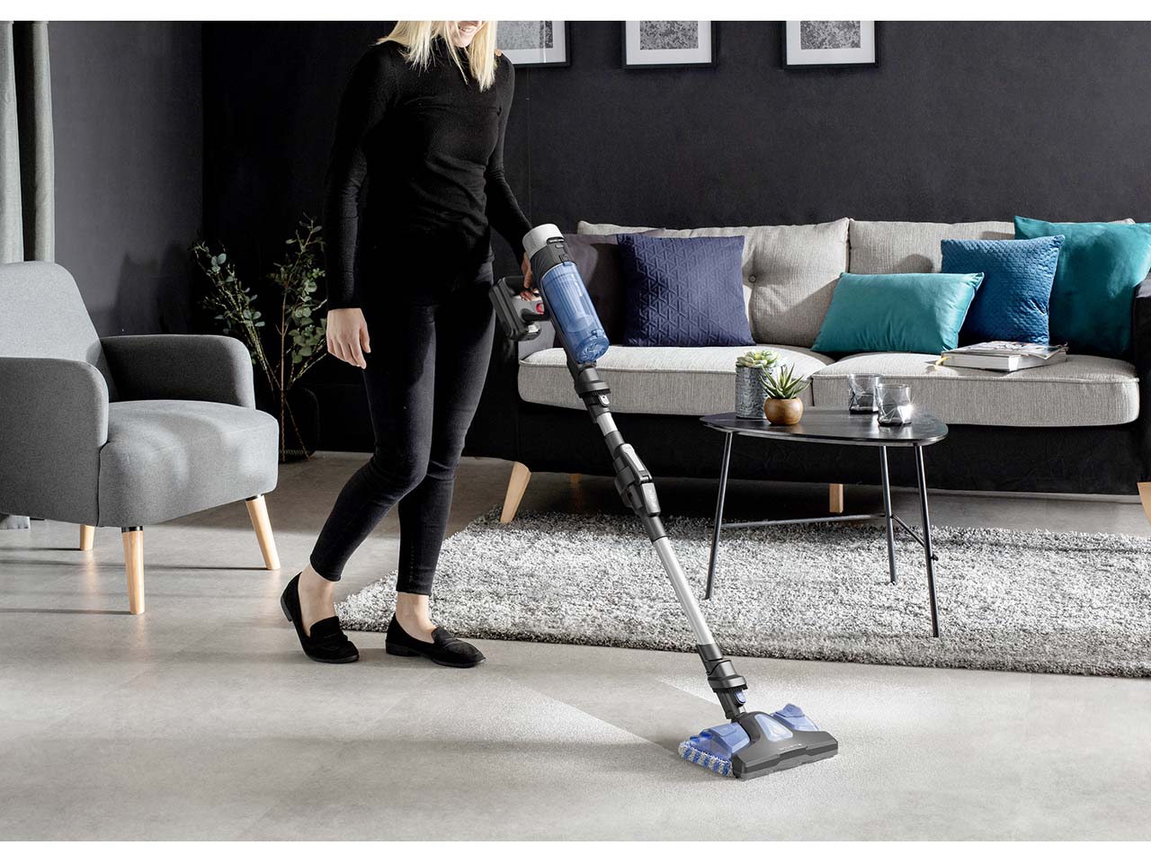 - Leistungsstarker, beutelloser 2-in-1-Akku-Staubsauger zum Saugen und Wischen