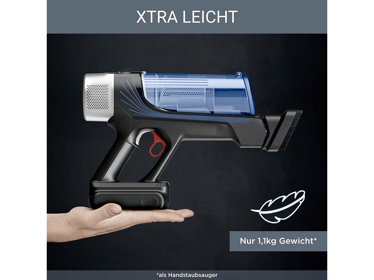 | Lieferumfang: | X-Force Flex 9.60 Aqua, Ladeschale, Ladekabel, Zusätzliche Filter, Polsterdüse, Fugendüse, Aqua Slim Düse, 2 Wischmopps. |