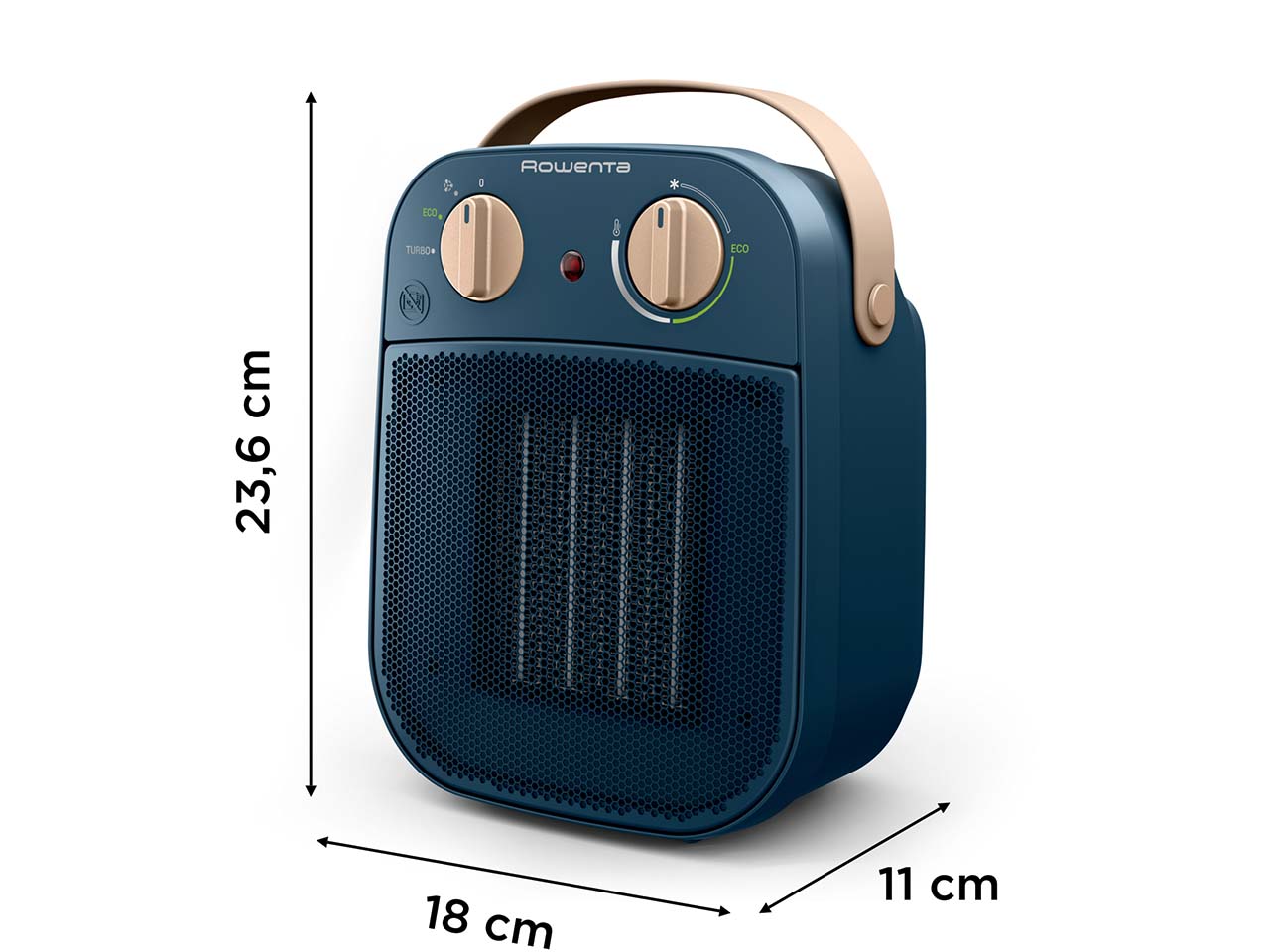 Kompakt, modern und ein echter Leistungsträger: Der kompakte Heizlüfter von Rowenta heizt Räume bis 30 m²! Dabei kann die ECO- oder die TURBO-Einstellung benutzt werden. Im ECO-Modus spart das Gerät bis zu 50 % Energie im Vergleich zur höchsten Stufe. Der Heizlüfter kann das ganze Jahr verwendet werden: Dank Kühlfunktion eignet er sich auch für den Sommer. Das geräuscharme Gerät verfügt über einen Tragegriff, sodass es immer schnell dort ist, wo es gebraucht wird. Im Inneren befindet sich ein entnehmbarer, auswaschbarer Filter, der Staub auffängt. Da das Gerät spritzwassergeschützt ist, kann es auch im Badezimmer eingesetzt werden.
