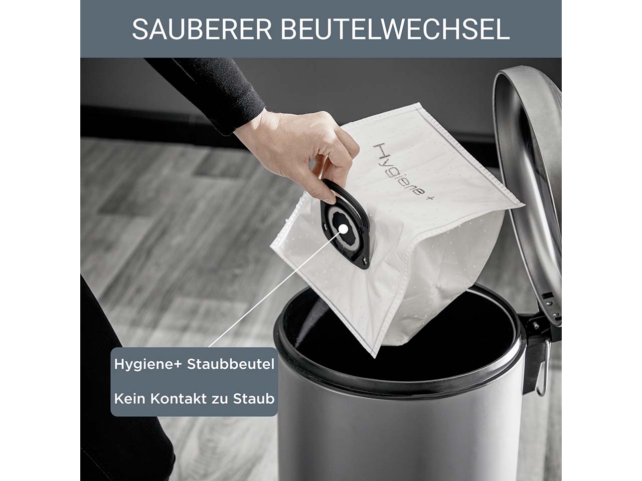 | Lieferumfang: | Green Force Effitech® Staubsauger, Fugendüse, Flexible XXL-Fugendüse, Mini Turbo-Bürste, Polsterdüse, Parkettbürste, Hygiene+ Staubbeutel. |