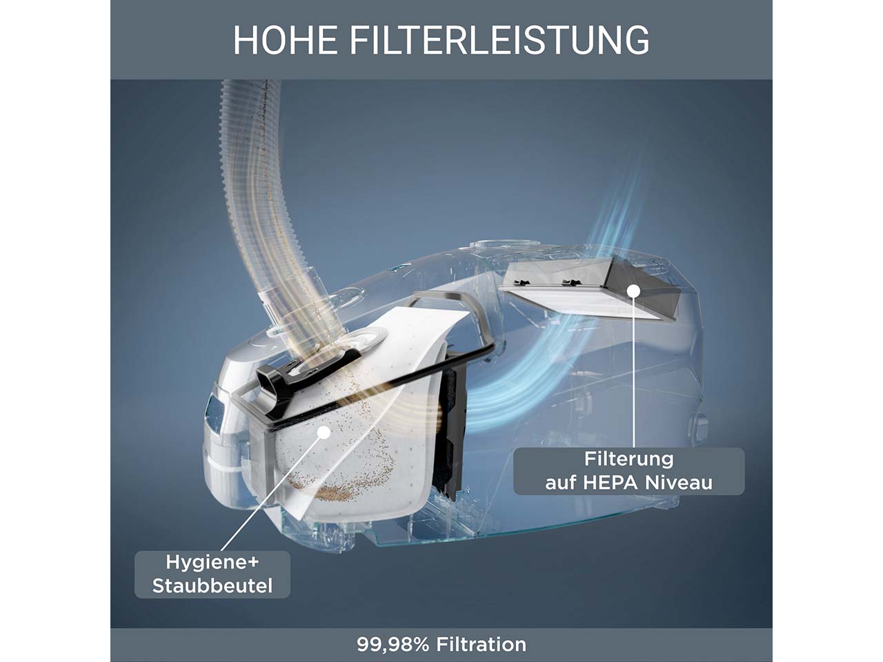 - Leistungsstarker Staubsauger mit HEPA-Filterung