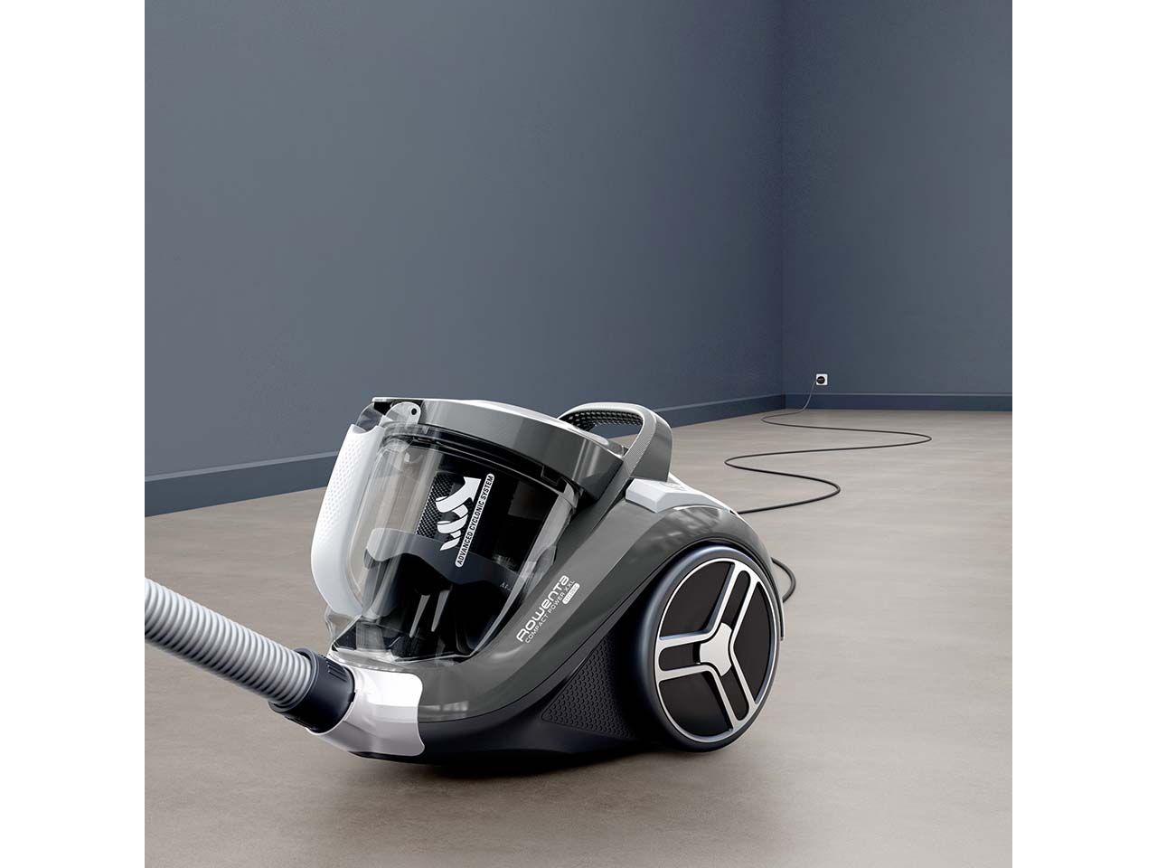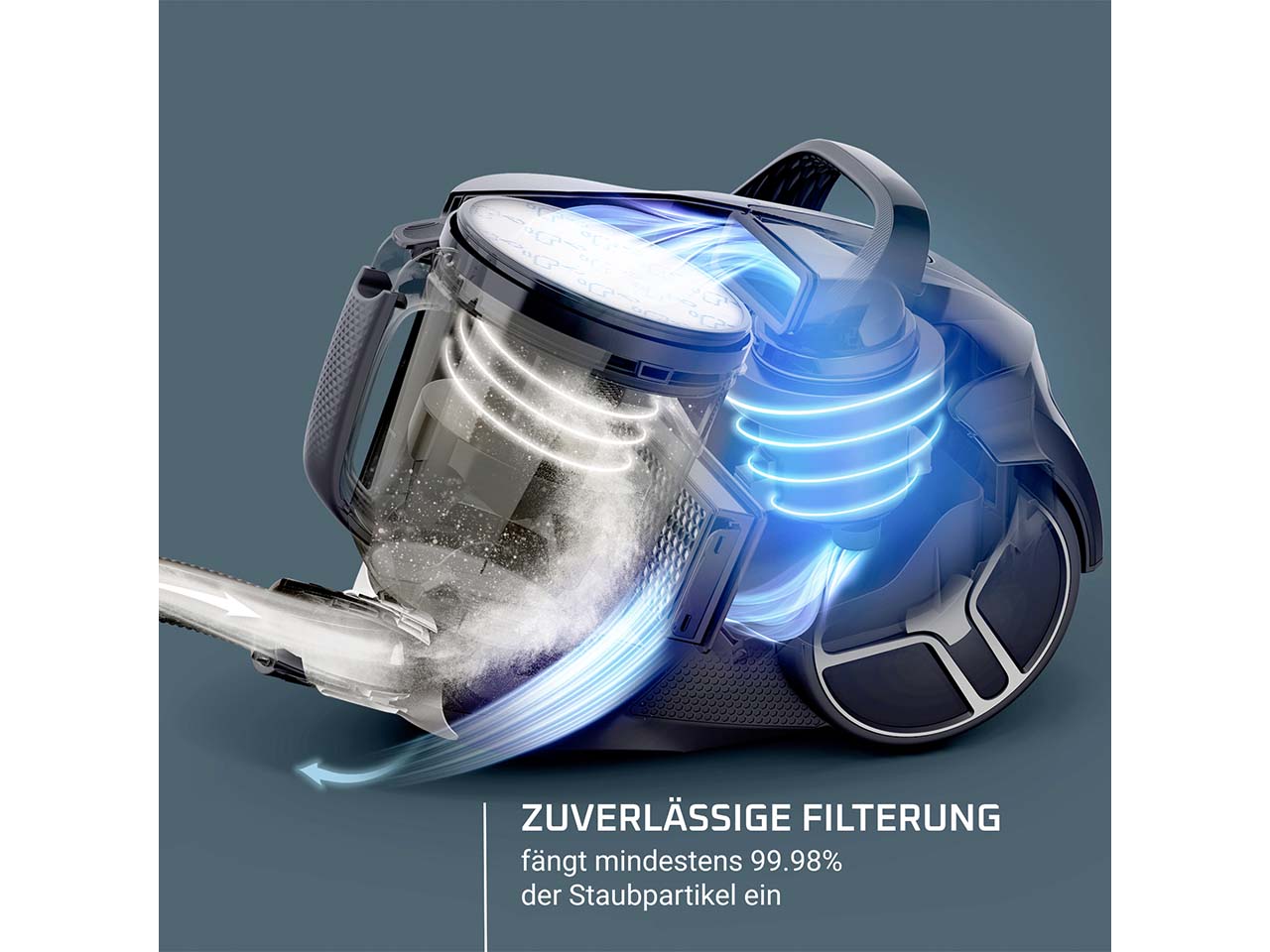 Der Rowenta Staubsauger vereint starke Saugleistung, großzügiges Fassungsvermögen und modernes Design in einem kompakten Gerät. Mit seinem 900-Watt-Max-Motor und innovativer Zyklontechnologie sorgt er für kraftvolle Reinigung bei geringem Energieverbrauch. Der XXL-Staubbehälter mit 2,5 l Volumen ermöglicht lange Reinigungseinheiten in Wohnbereichen jeder Größe und ist einfach auszuleeren. Das 3-stufige Filtersystem des Staubsaugers trennt Staub effektiv von der Luft und sorgt für ein sauberes Wohnumfeld. Dank großem Aktionsradius reinigt der Staubsauger mühelos große Flächen.