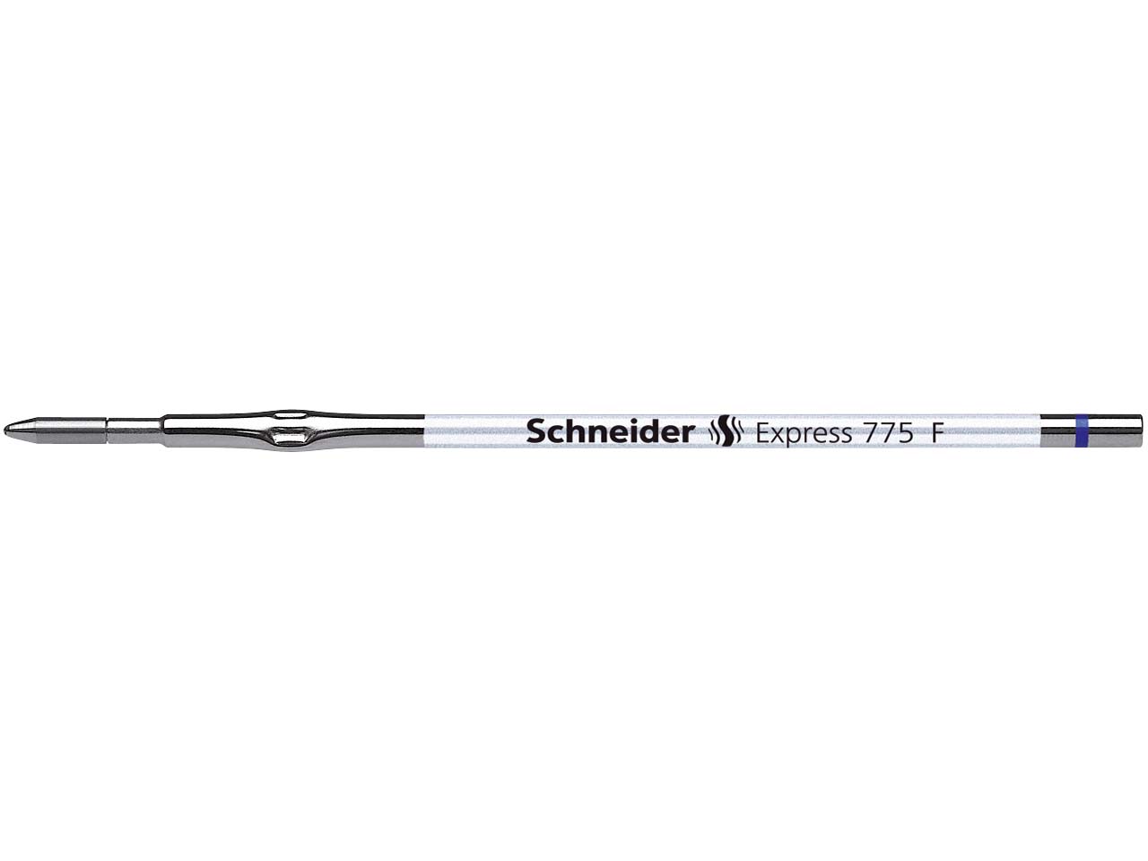 Schneider Ganzmetall-Ersatzminen "Express 775 F" mit schwarzer oder blauer Schreibfarbe, feiner Strichstärke (F) und Jumbospitze. Die X20-Mine ist passend für alle Schneider Kugelschreiber mit "Plug & Play" und viele weitere Fabrikate. Licht- und dokumentenechte Tintenpaste, die dank verschließfester Edelstahlspitze vollständig und schmierfrei nutzbar ist. 1 Pack. = 10 Stk.