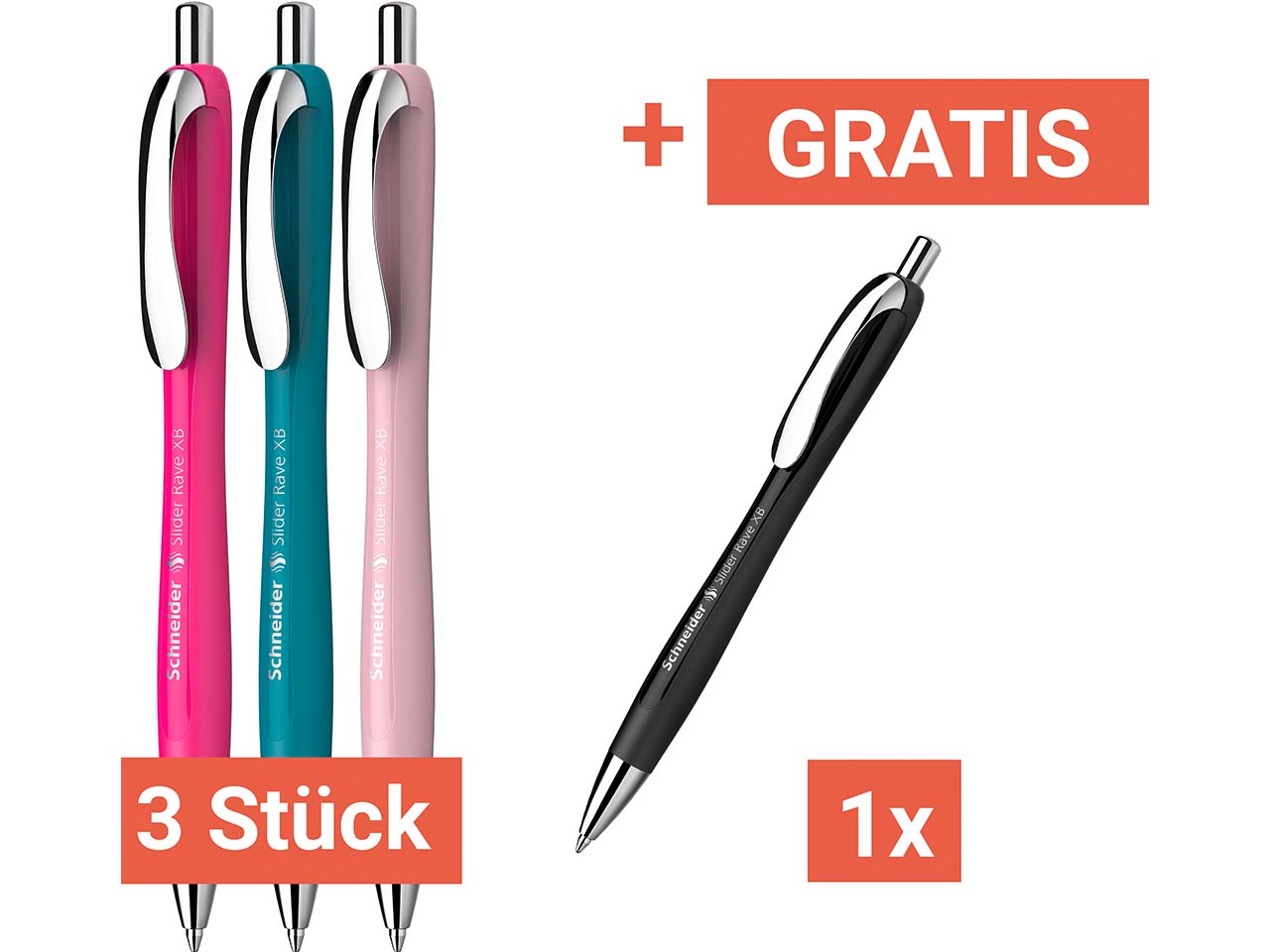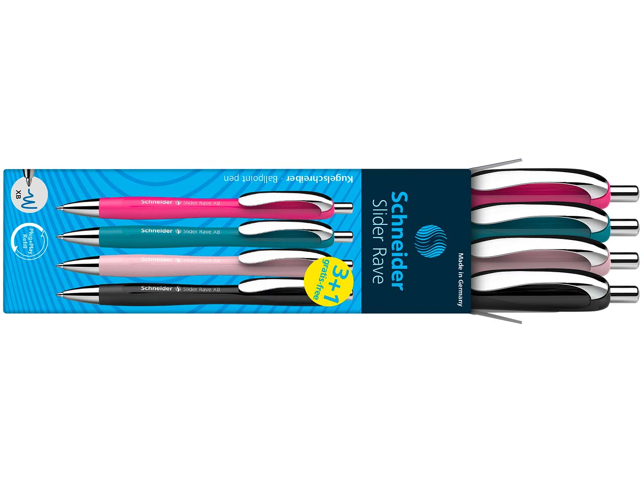 Schneider Kugelschreiber "Slider Rave", 3+1 Gratis