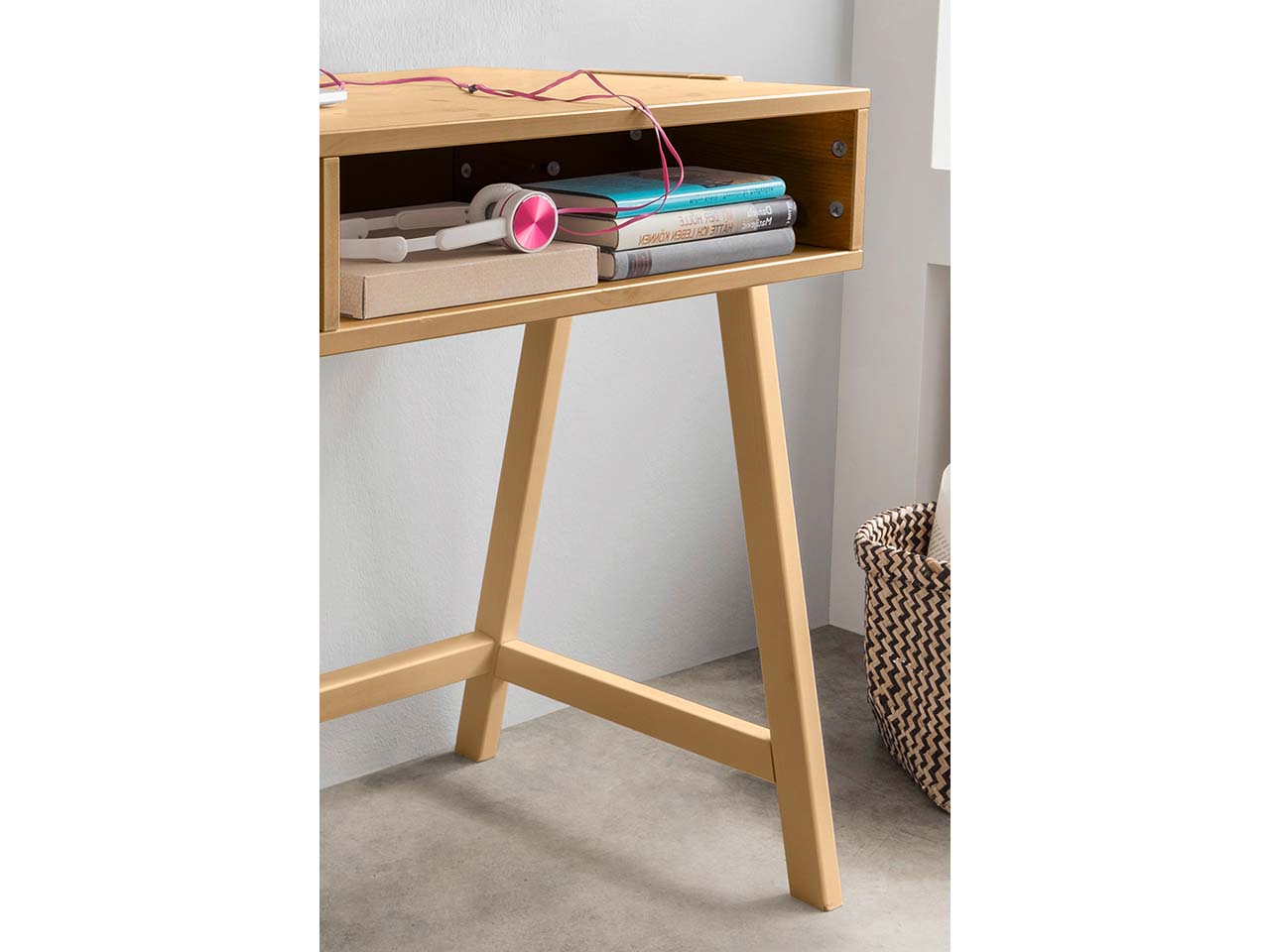 Die Herstellung des Schreibtisches erfolgt in Europa. Buchen- und Kiefernholz stammen aus unabhängiger, zertifizierter europäischer Forstwirtschaft. Je nach Auswahl ist die Oberfläche ist mit einer lösemittelfreien, auf Wasser basierenden Lasur behandelt, auf Pflanzenbasis gelaugt oder geölt.