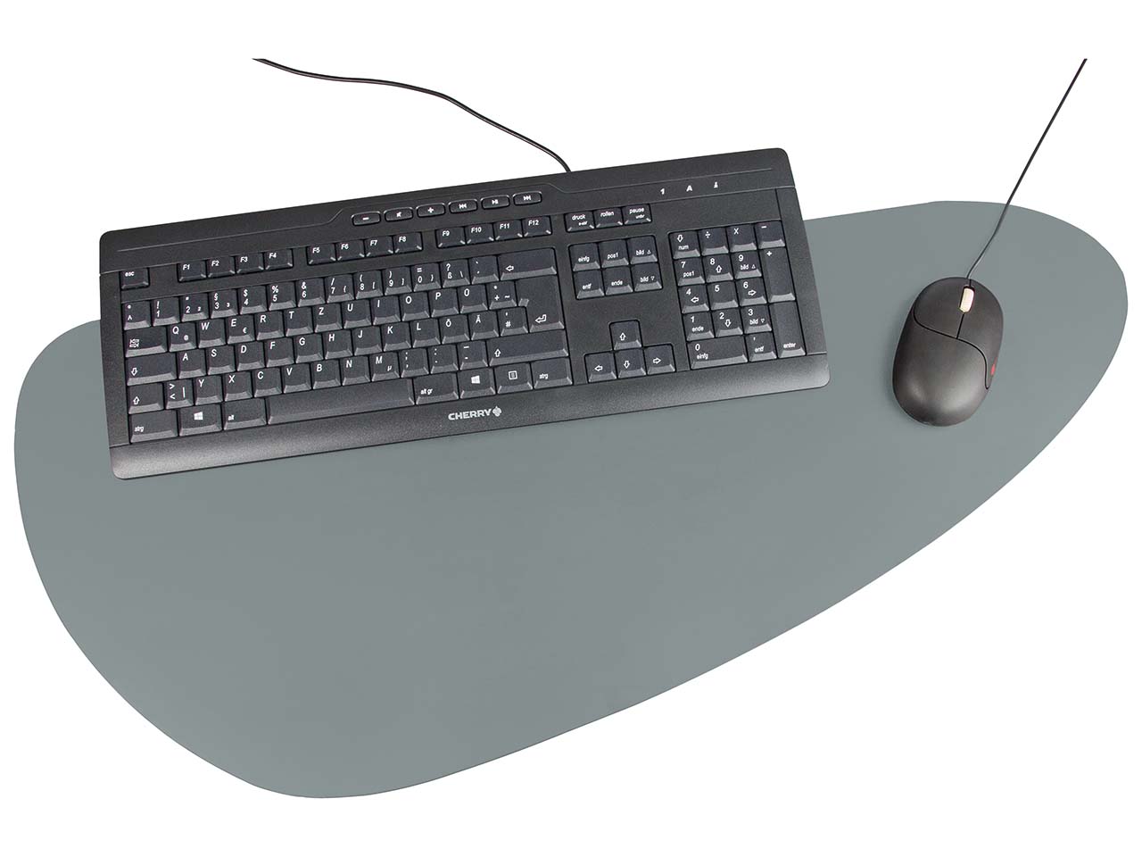 Optisch erinnert die Schreibunterlage in Tropfenform an Echtleder aber sie besteht aus einer Verbindung aus Naturkautschuk und Lederverschnittresten. Die Unterlage eignet sich ideal, um den Schreibtisch bei Büroarbeiten effektiv zu schützen. 74 x 33 cm.