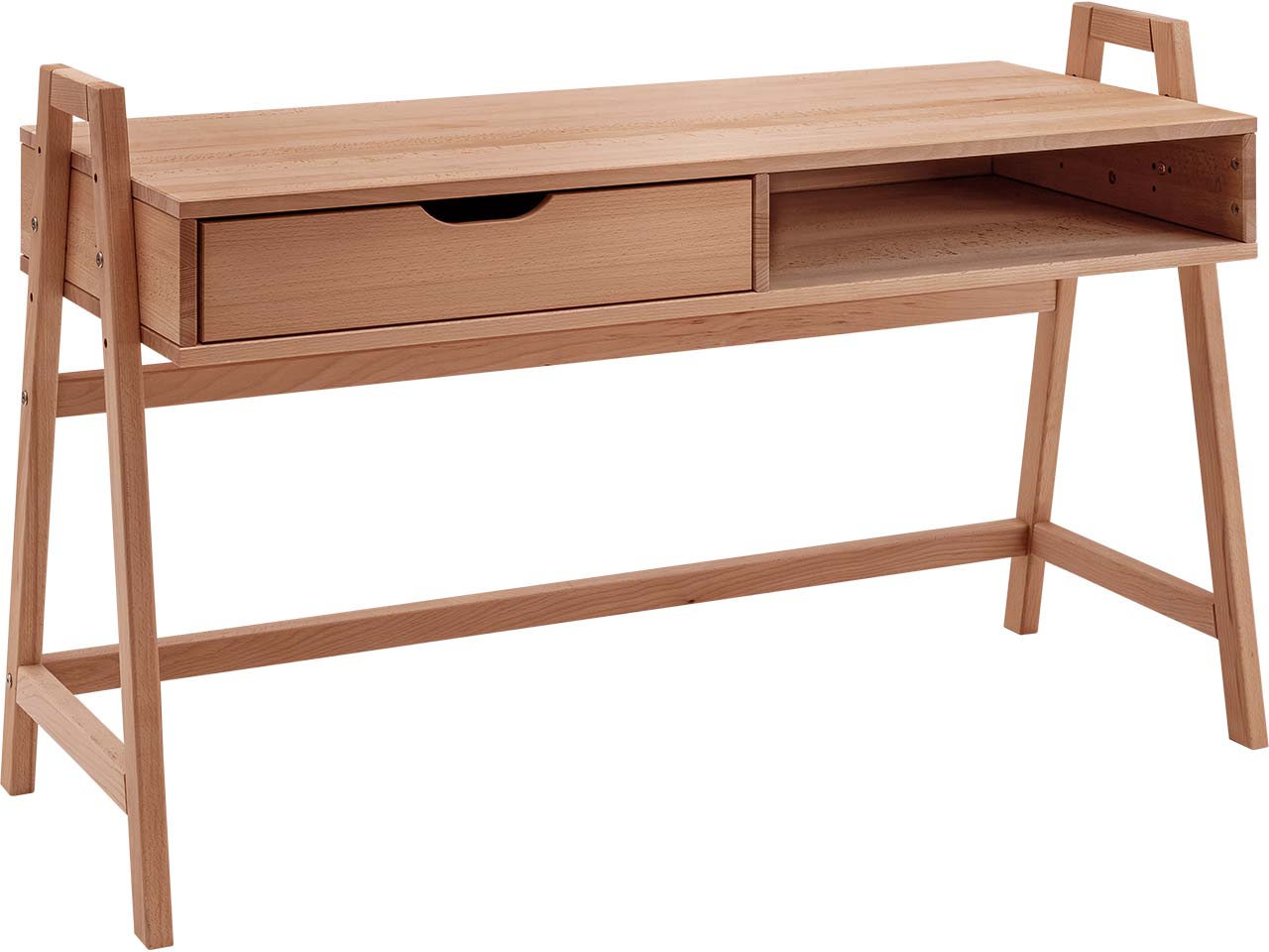Buchenholz ist ein gefragter Rohstoff im Möbelbau, denn dank der überdurchschnittlichen Festigkeit lässt es sich besonders leicht und sauber bearbeiten. Das Holz besitzt eine ebenmäßige Struktur mit feinen Poren, durch die das Holz atmet und so die Feuchtigkeit im Raum regulieren kann. Möbel aus Buchenholz sind oft lebenslange Begleiter, da das Material extrem dauerhaft und stabil ist. Neben der ansprechenden Optik des rötlichen Holzes, ist auch dessen Haptik besonders angenehm. Diese wird durch die Oberflächenbehandlung mit natürlichem Öl noch betont.