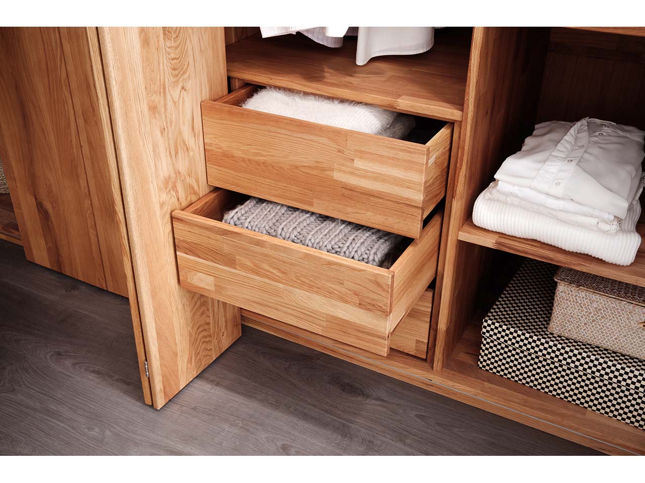 Die perfekte Ergänzung für Ihren Kleiderschrank "Rödwig": Der Schubkasteneinsatz mit 3 Schubladen überzeugt mit exzellenter Verarbeitung aus massiver Wildeiche. Die Laufleisten bestehen aus Metall und Teleskoplaufschiene funktioniert mit Push-Öffnung. Mit Deckplatte.