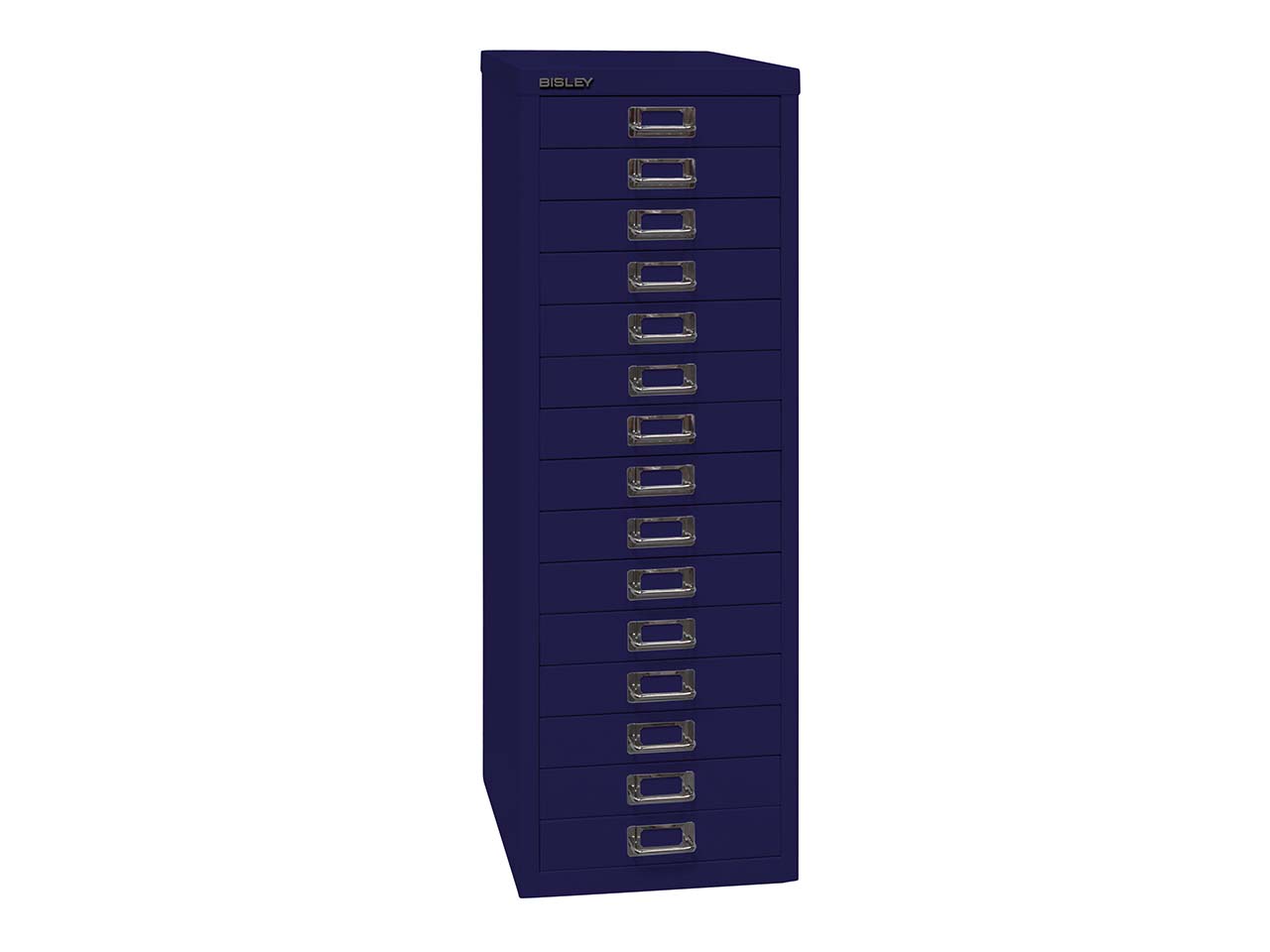 Der BISLEY Schubladenschrank vereinfacht die Aufbewahrung von Büroaccessoires. Der Schrank aus Stahl überzeugt mit Langlebigkeit und Stabilität. Die 15 Schubladen mit einer Höhe von 5,1 cm haben eine Kapazität von 2,8 kg. Geeignet für Kleinteile und Dokumente im Format DIN A4. B 27,8 x T 38 x H 85,7 cm. Farbe blau.