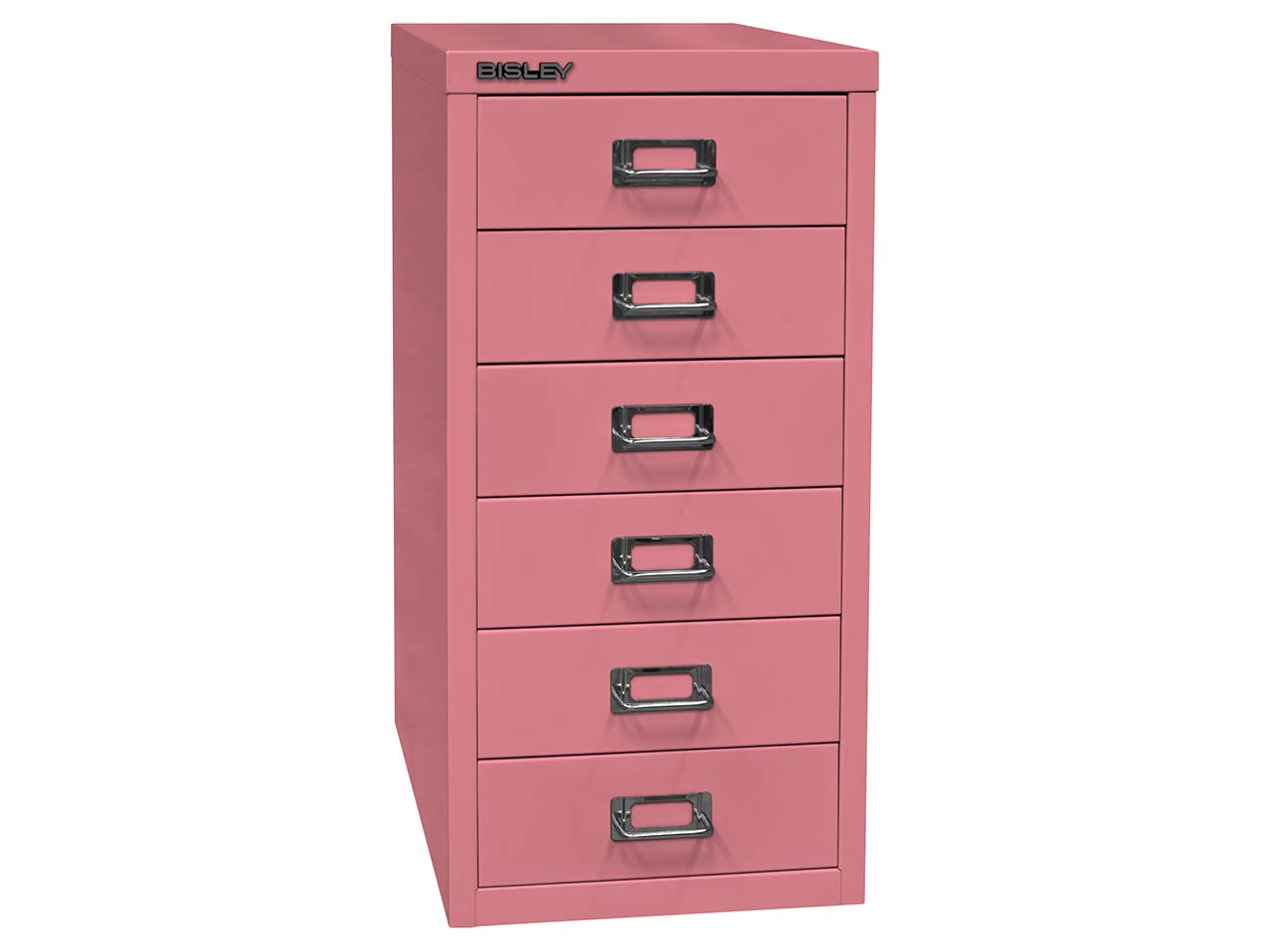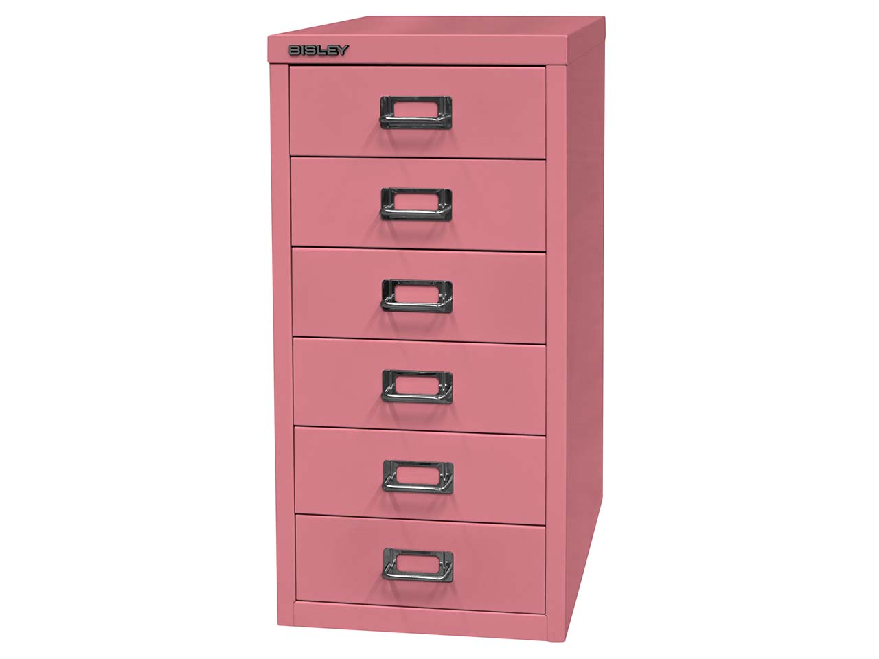 Der BISLEY Schubladenschrank ist aus langlebigem Stahl hergestellt und wartet mit 6 Schubladen auf. Eignet sich besonders für Kleinteile und Papieraufbewahrung. Mit Etikettenfenstern. 6 Schubladen mit H 8,7 cm. B 27,8 x T 38 x H 59 cm. Farbe pink.