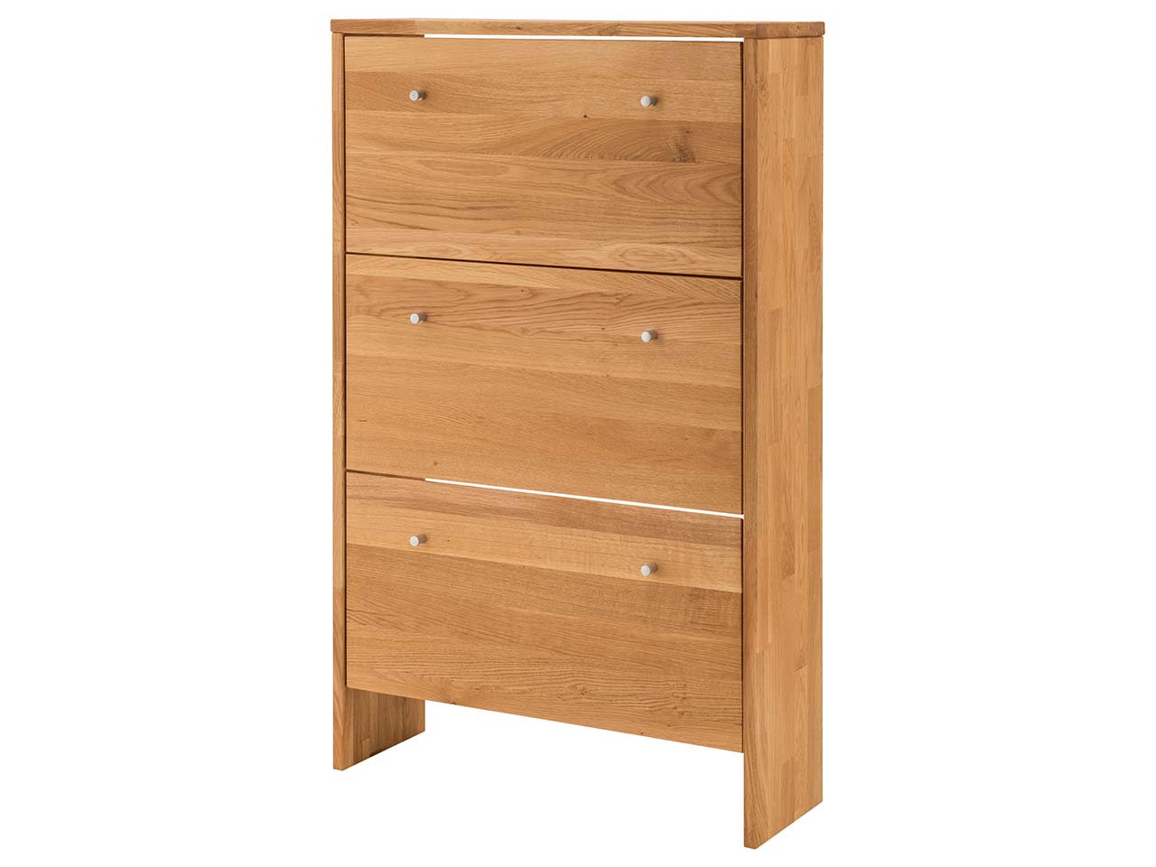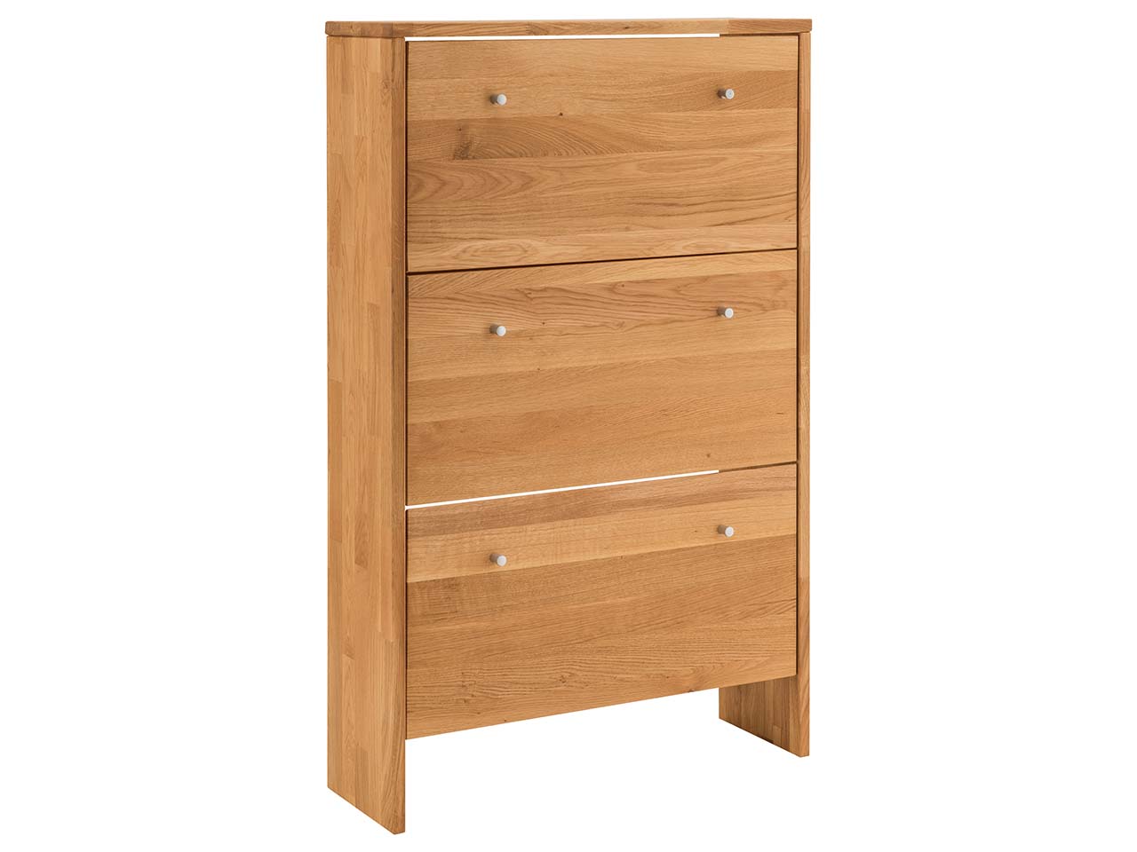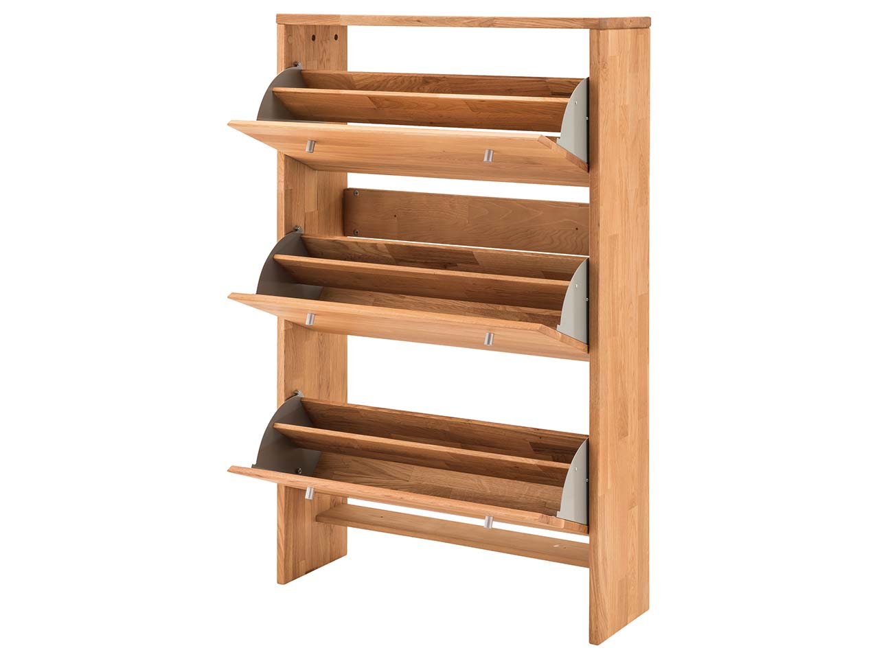 Der Schuhschrank wird aus massiver, FSC-zertifizierter Wildeiche gefertigt. Die Holzoberfläche ist Öl auf Pflanzenbasis geölt.