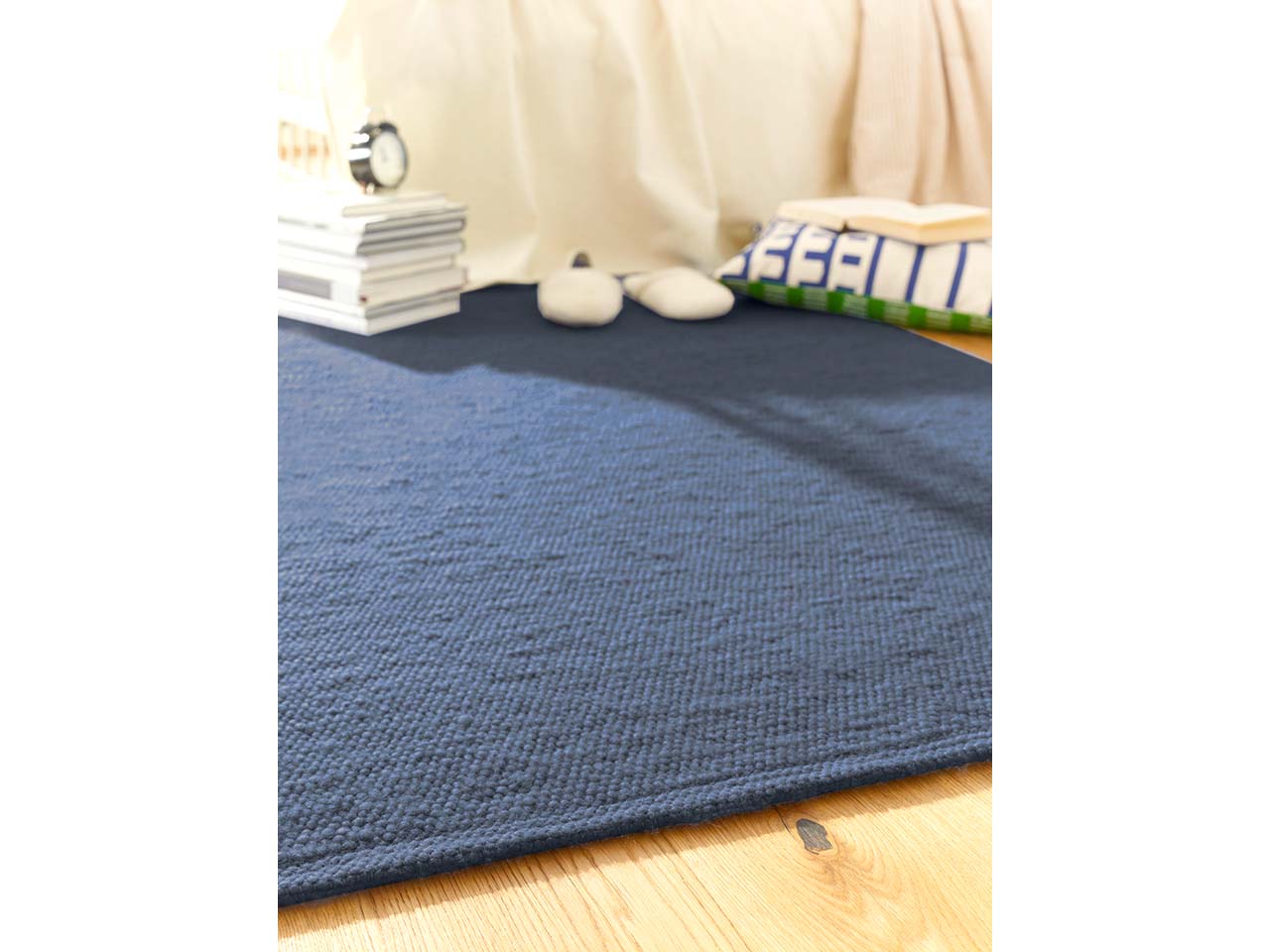 Der rechteckige Schurwollteppich "Alz" ist nach Öko-Tex Standard 100 zertifiziert. Der Teppich besteht zu 70 % aus Schafwolle und zu 30 % aus Jute. Mit Selbstreinigungsfunktion für eine lange Lebensdauer. 100 % durchgefärbt. Florhöhe 12 bis 13 mm. Gewicht: 2,2 kg/m². B 130 x T 200 cm. Farbe blau.
