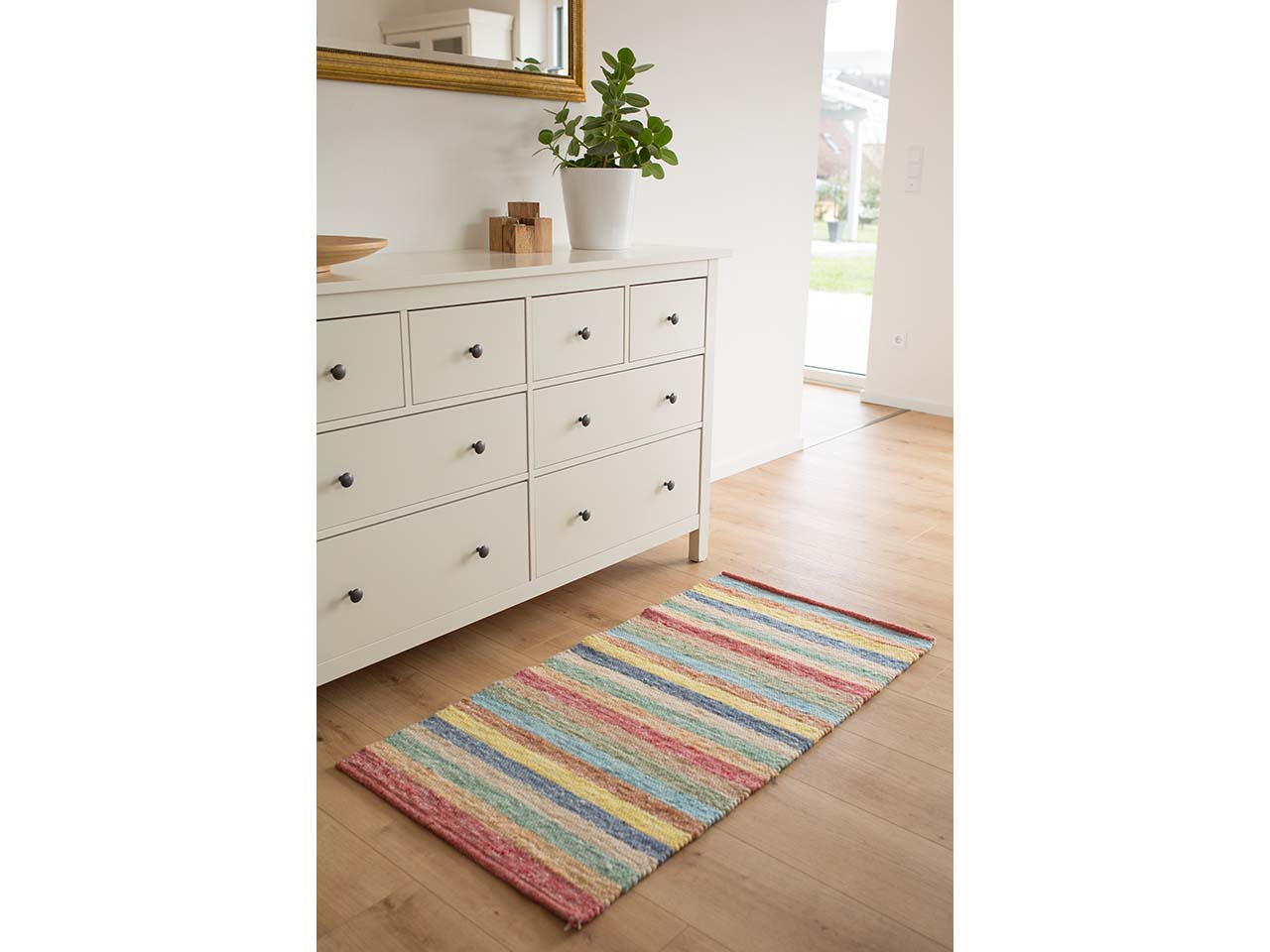 - Bunter, strapazierfähiger Schurwollteppich
