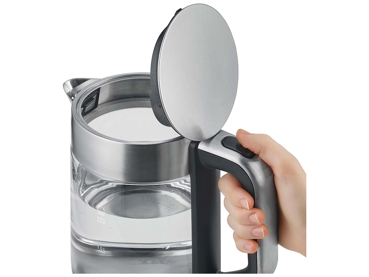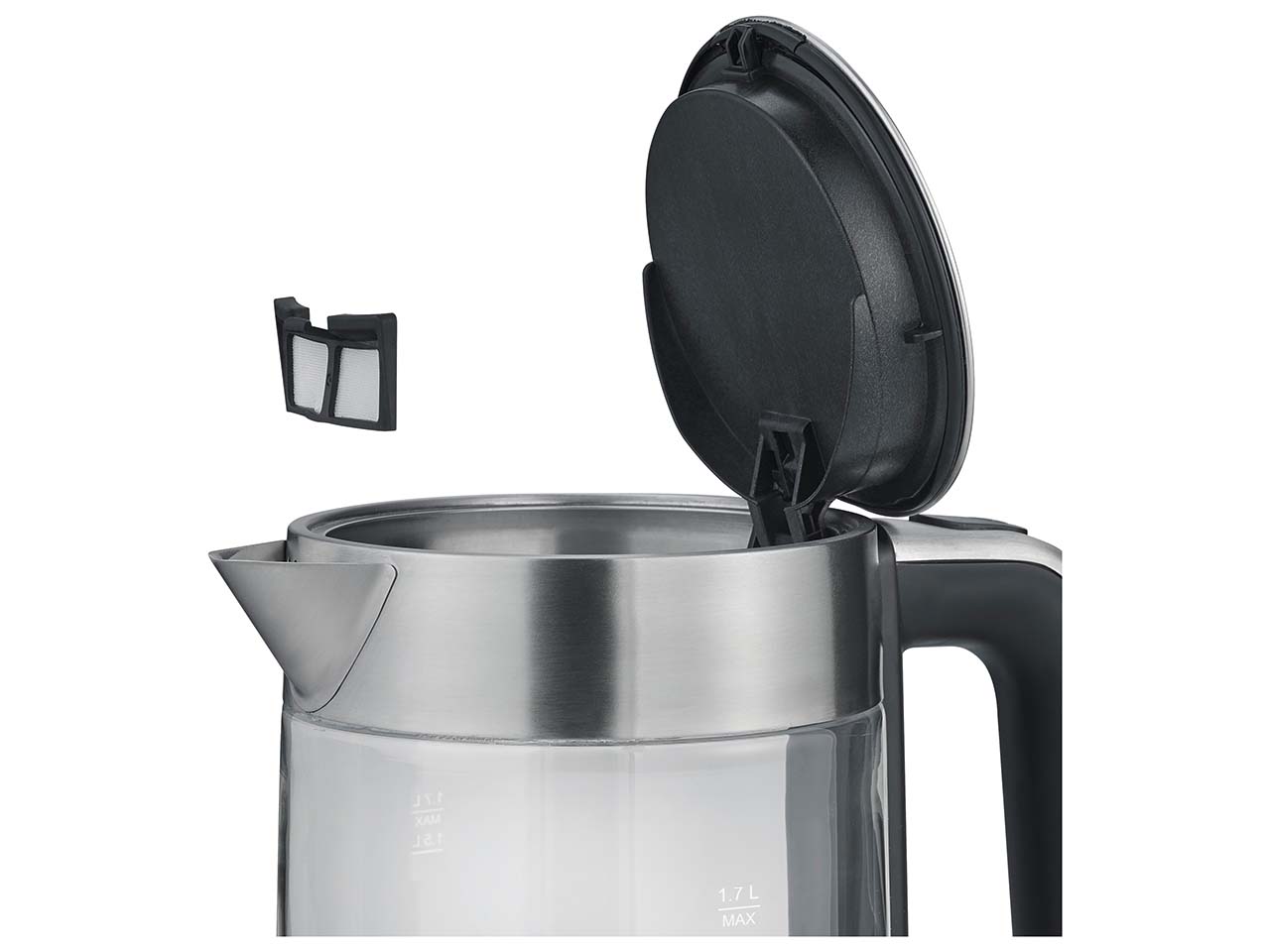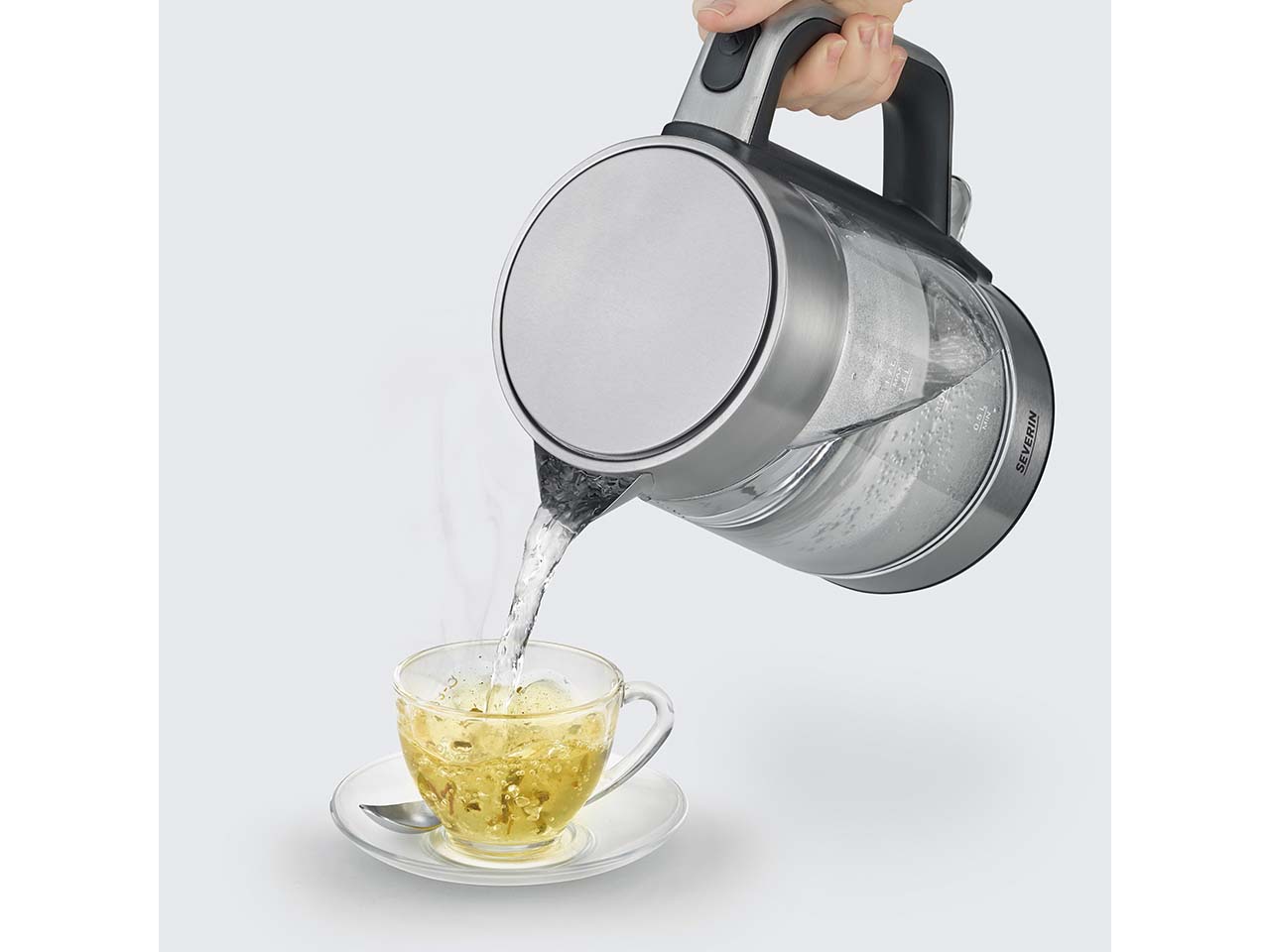 - Wasserkocher in hochwertigem Edelstahl-Glas-Design