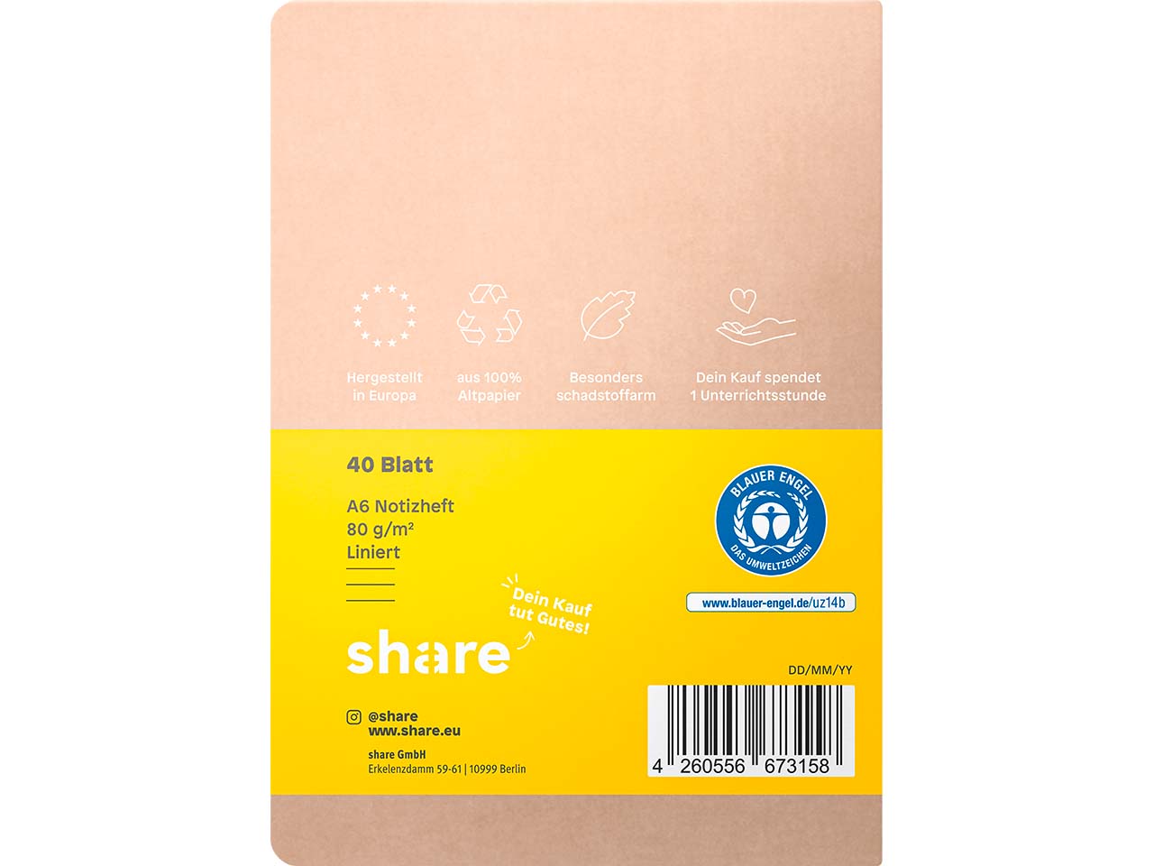 Bei share-Schreibwaren handelt es sich um sozial- und umweltverträgliche Produkte namhafter europäischer Hersteller, deren Verkauf etwas Gutes tut. Das B-Corp-Unternehmen share setzt sich bereits seit Jahren für mehr soziale Gerechtigkeit ein und unterstützt mit dem Verkauf von verschiedenen Produkten soziale Projekte. Jedes Produkt stellt gleichzeitig eine Hilfeleistung für Menschen in Not dar. Deswegen fließt ein Teil des Erlöses aus dem Verkauf der Schreibwaren in Bildung. Jedes verkaufte Schreibwarenprodukt ermöglicht eine Unterrichtsstunde in Uganda, einem der ärmsten Länder der Welt. Bisher konnten bereits mehr als fünf Millionen Schulstunden gespendet werden! Dazu gehört nicht nur der Unterricht selbst, sondern auch essenzielle Schulmaterialien und Hygieneprodukte wie Binden in den Schulen.