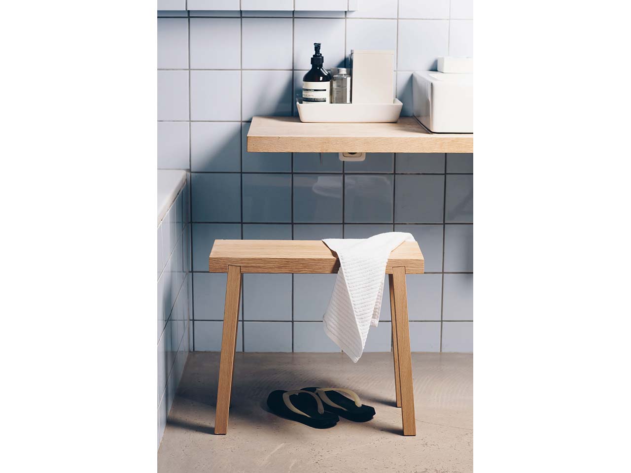 - Minimalistisch designter Hocker aus massivem Eichenholz