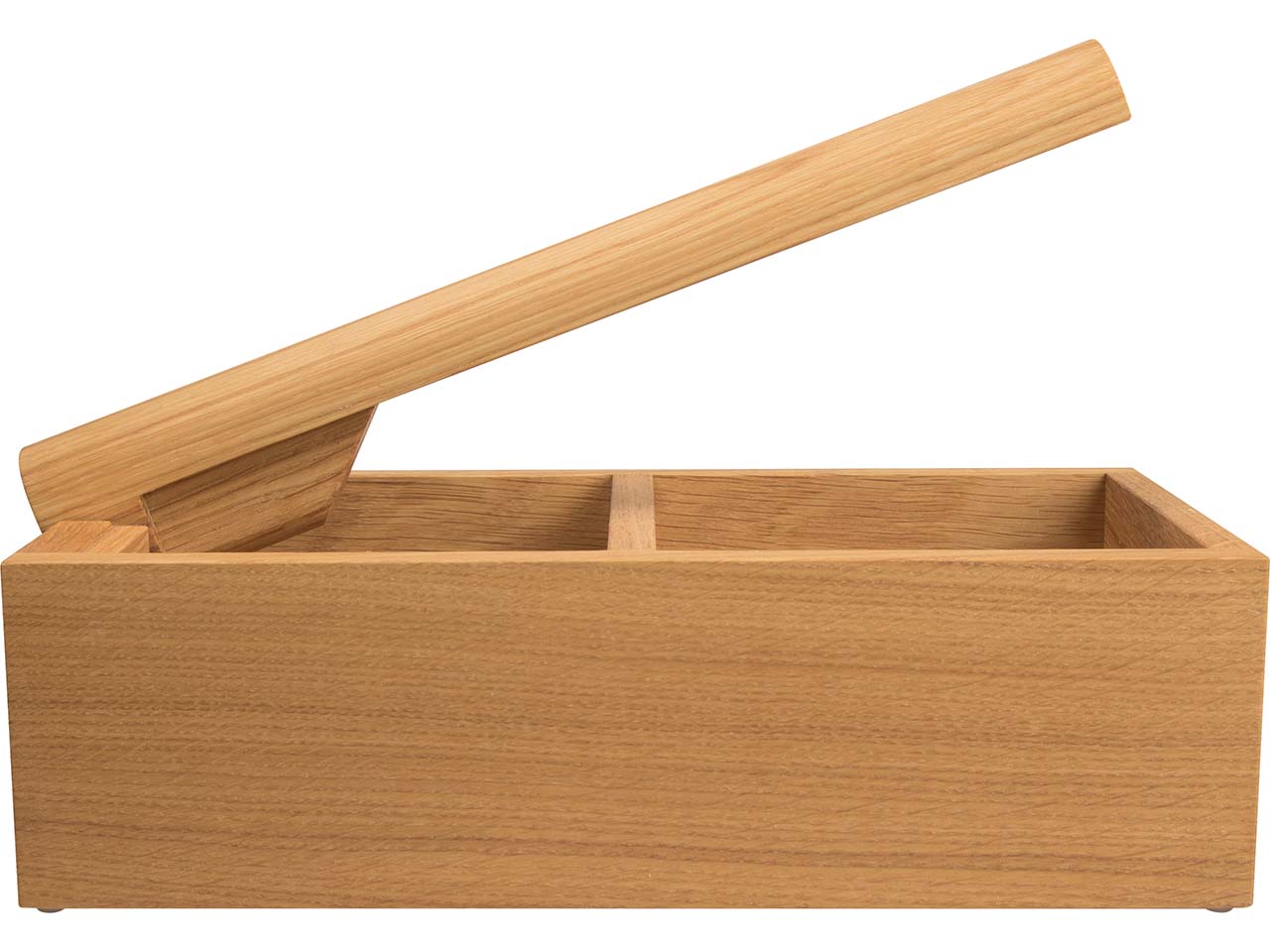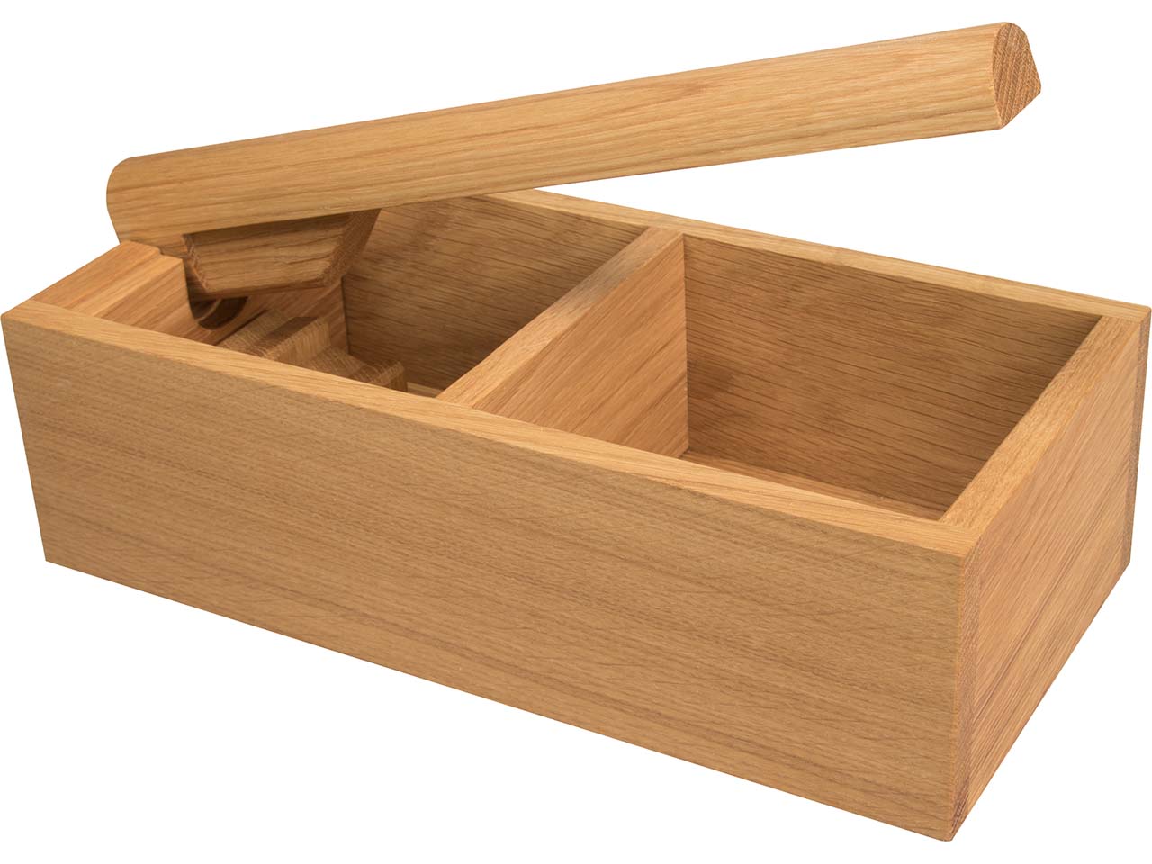 Dieser wunderschöne Nussknacker ist auch ein Designobjekt, das in jedem Raum ein neues Zuhause findet. Er bietet einen starken Hebel, mit dem sich selbst extrem harte oder kleine Nüsse knacken lassen. Highlight sind die zwei Fächer, die sich einerseits für den Nussnachschub und anderseits für die Schalen nutzen lassen. Dadurch herrscht immer Ordnung. Der repräsentative Nussknacker ist aus geöltem Eichenholz gefertigt und exzellent verarbeitet. Ein wunderbares Geschenk für alle Nussliebhaber:innen! L 31 x B 15 x H 11,5 cm.