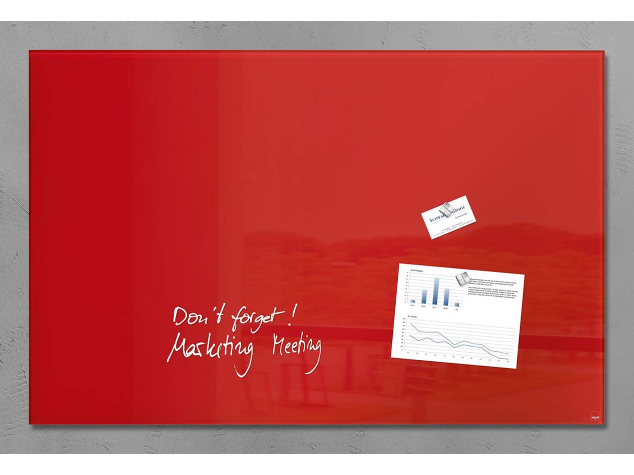 Mehr als funktional: Die Sigel Glas-Magnettafel "artverum" ist ein absoluter Blickfang in jeder Umgebung. Ob als funktionale Info- und Wandtafel im Büro, Menükarte im Restaurant oder als Pinnwand für Notizen und Einkaufszetteln zu Hause, die Magnettafel macht stets eine klasse Figur. Das bereits mehrfach ausgezeichnete puristische Design sowie die durchdachte Funktion der Glas-Magnettafel lassen ein herkömmliches Whiteboard im Vergleich verblassen.