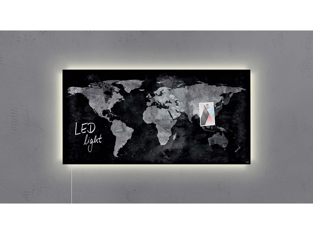 Sigel Glas-Magnettafel "artverum" mit LED-Beleuchtung, Weltkarte