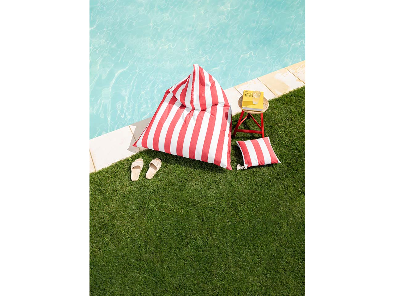 Sitzsack im Streifenlook für das perfekte Urlaubsfeeling auf dem Balkon, der Terrasse oder im Garten. In dem Bean Bag sitzt es sich einfach wunderbar bequem. Dafür sorgen die hochwertigen EPS-Perlen im Inneren, die das Unternehmen in Deutschland selbst herstellt. Der Bezug besteht aus wasser- und schmutzabweisendem Material. Hier darf auch mal ein Eis tropfen oder ein Regenguss herunterkommen. Der Bezug ist ganz einfach zu säubern. Der Sitzsack ist ein gemütlicher Begleiter für die warme Jahreszeit. B 110 x T 115 x H 90 cm.