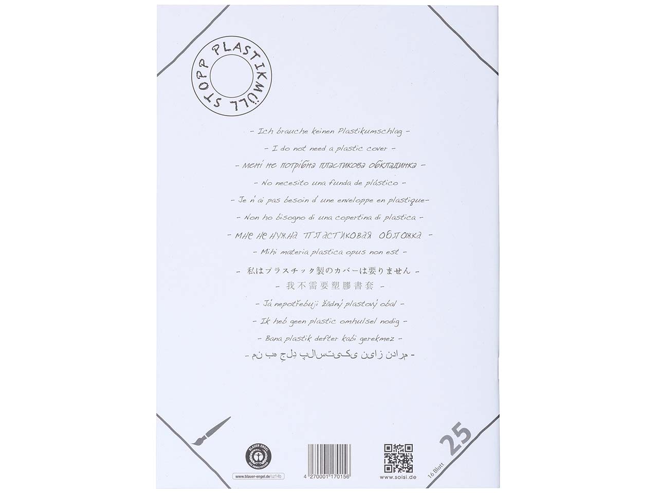 Das Schulheft in der Standard-Lineatur 25 besteht aus Recyclingpapier und eignet sich am besten für Deutsch- und Fremdsprachenunterricht. Das mit dem Blauen Engel ausgezeichnete Heft ist mit ausmalbaren Ecken ausgestattet. Dadurch braucht es keinen zusätzlichen Umschlag für die Zuordnung! Das Schulheft ist frei von Mustern und auch nicht beschichtet, wodurch es sich vollflächig und individuell gestalten lässt. Auf der ersten Heftinnenseite befindet sich ein informativer Text zum Thema Plastikvermeidung und Umweltschutz. Der Umschlag hat eine Grammatur von 300 g/m² und ist damit perfekt für den Schulalltag.