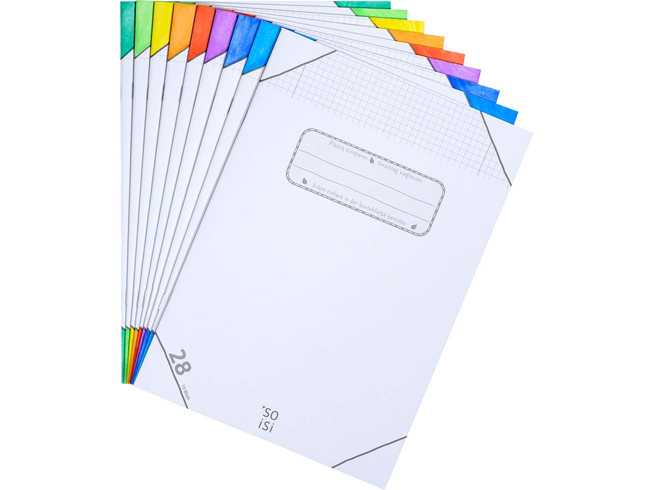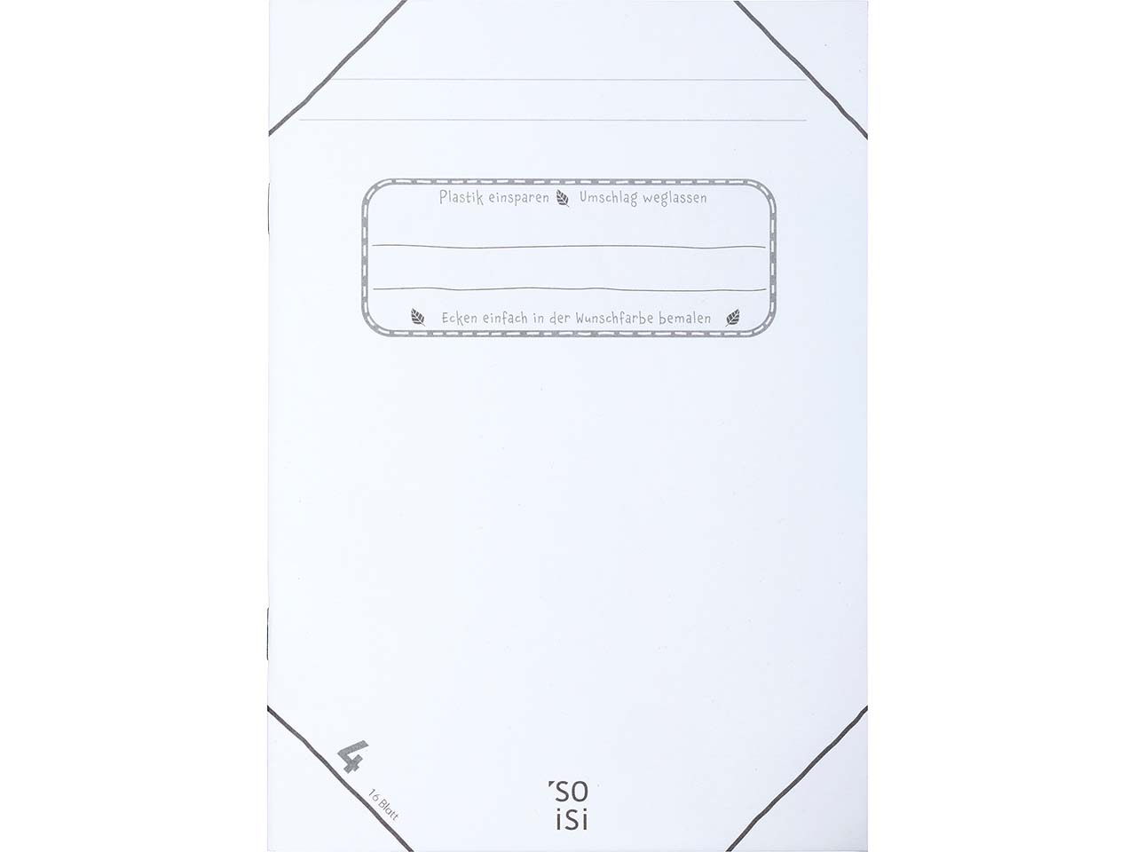Ein Schulheft, das Schüler:innen nach ihren eigenen Ideen kreieren können! Das Schulheft mit Lineatur 4 hat Ecken, die sich farbig anmalen lassen – ein Plastikumschlag wird hier demnach nicht benötigt. Das restliche Heft bietet noch viel Platz, um sich künstlerisch auszutoben. Es entsteht so immer ein individuelles Schulheft, was die Zuordnung kinderleicht macht. Hergestellt ist das Heft aus Recyclingpapier. Im Inneren warten noch informative Texte zu den Themen Plastikvermeidung und Umweltschutz. Der Umschlag hat eine Grammatur von 300 g/m² und ist damit perfekt für den Schulalltag.