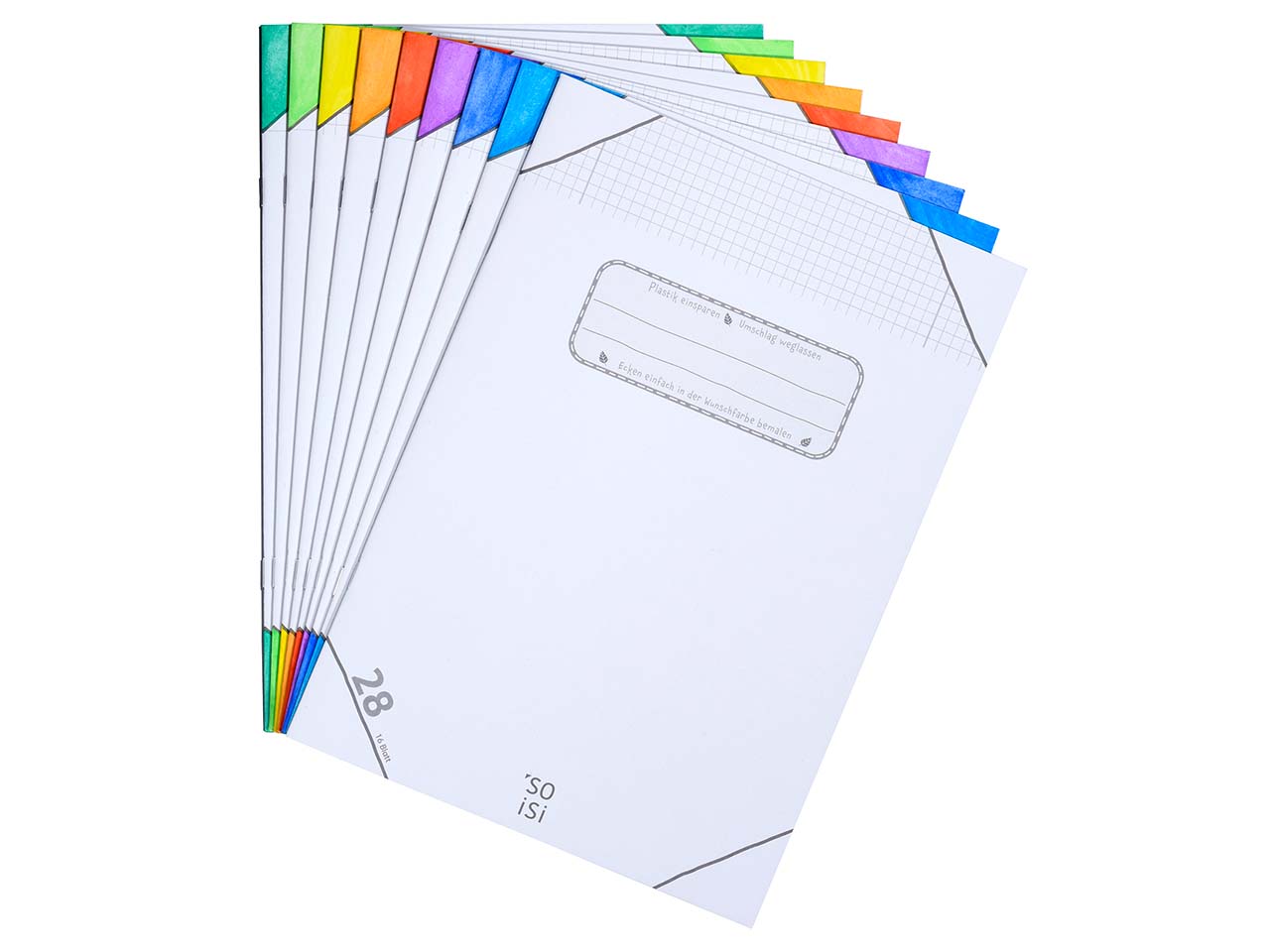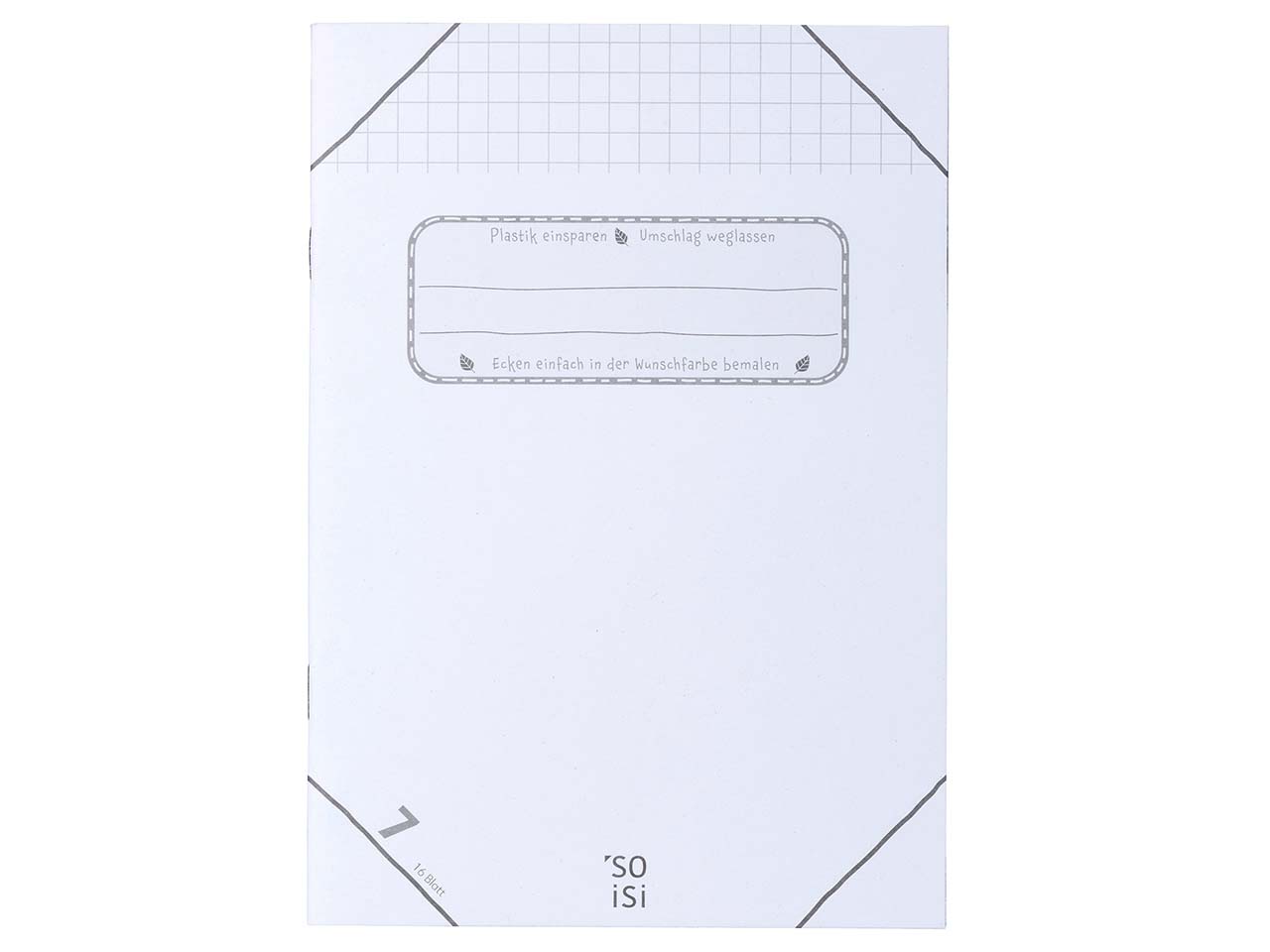 Weniger Plastik, mehr Kreativität: Die mit dem Blauen Engel ausgezeichneten Hefte von Soisi kommen ganz ohne zusätzlichen Umschlag aus Plastik aus. Um die Hefte auseinander zu halten, sind die Ecken so gestaltet, dass Kinder sie farbig ausmalen können. Da hier weder Muster noch eine Beschichtung zum Einsatz kommen, lässt sich das Cover vollflächig individuell gestalten. Für die Herstellung der DIN-A5-Hefte wird Recyclingpapier verwendet. Mit informativem Text zum Thema Plastikvermeidung und Umweltschutz im Inneren. Der Umschlag hat eine Grammatur von 300 g/m² und ist damit perfekt für den Schulalltag.