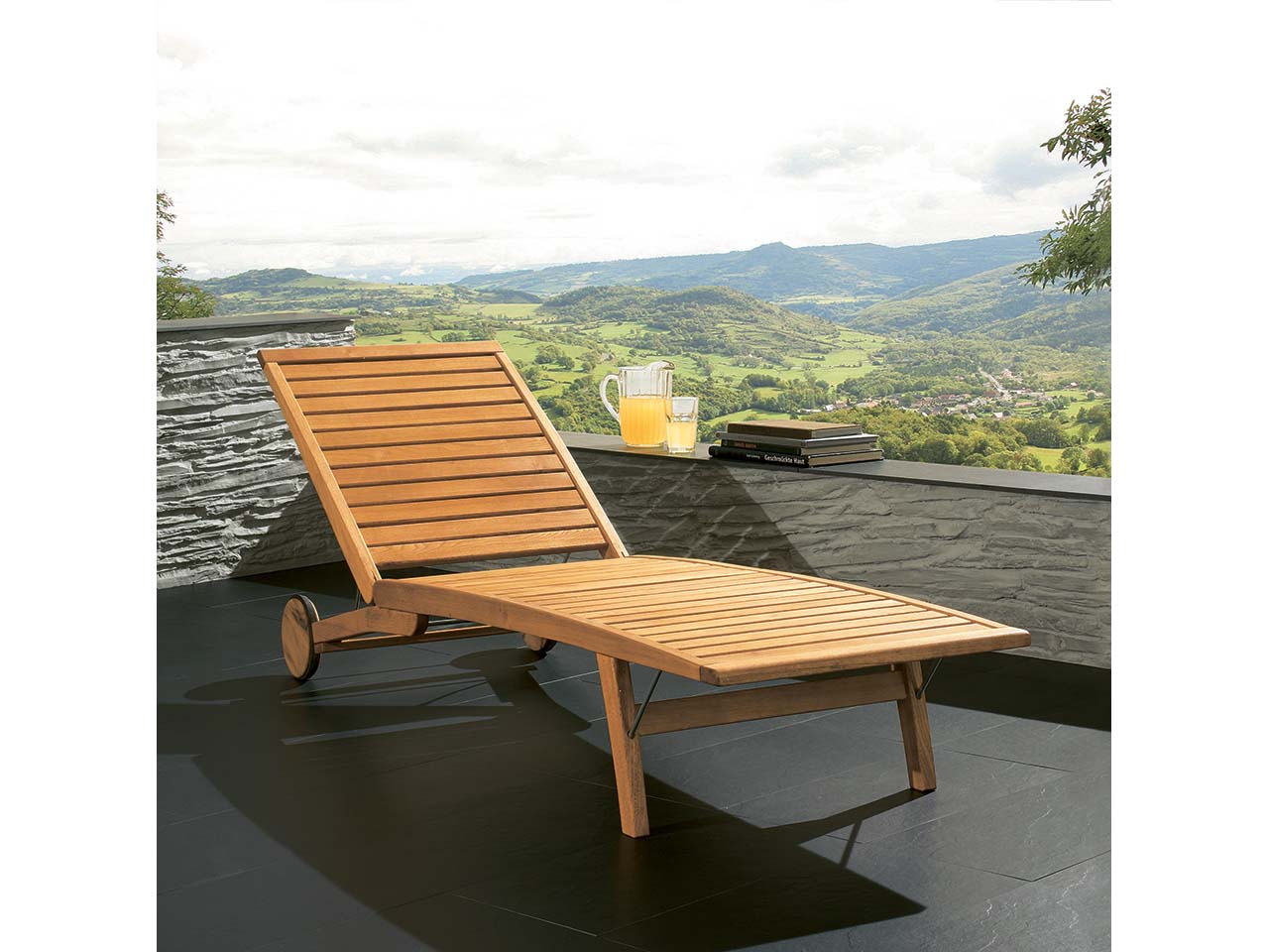 Für Tagträume unter freiem Himmel steht die robuste Liege "Talisa" bereit. Sie hat ein 4-fach verstellbares Rückenteil und zwei große Rollen, damit Sie bequem dem Stand der Sonne folgen können. Wetterfeste Robinie aus FSC-zertifizierter Forstwirtschaft. B 58 x L 200 x H 31 cm.