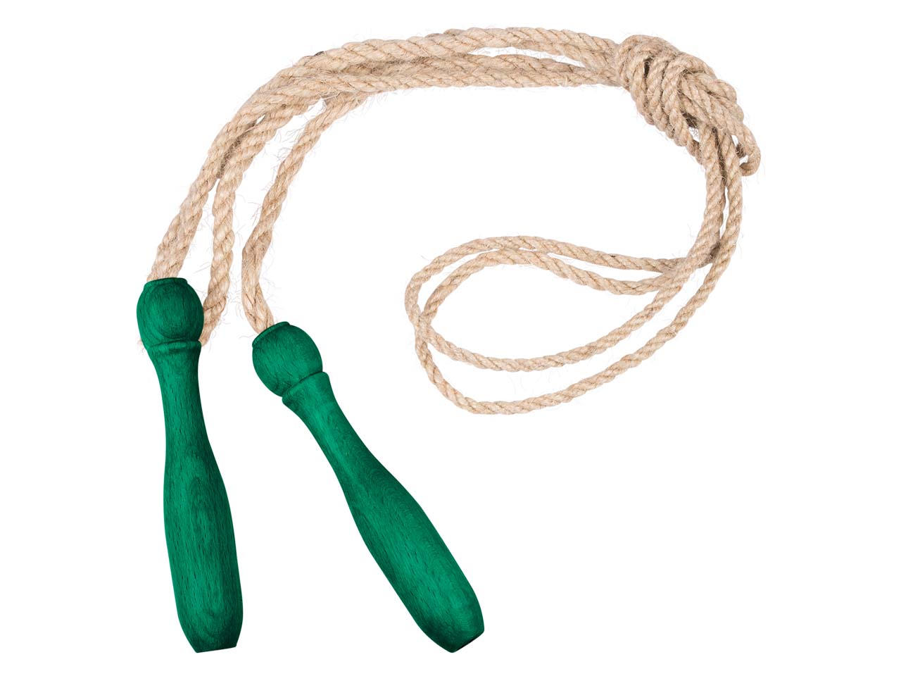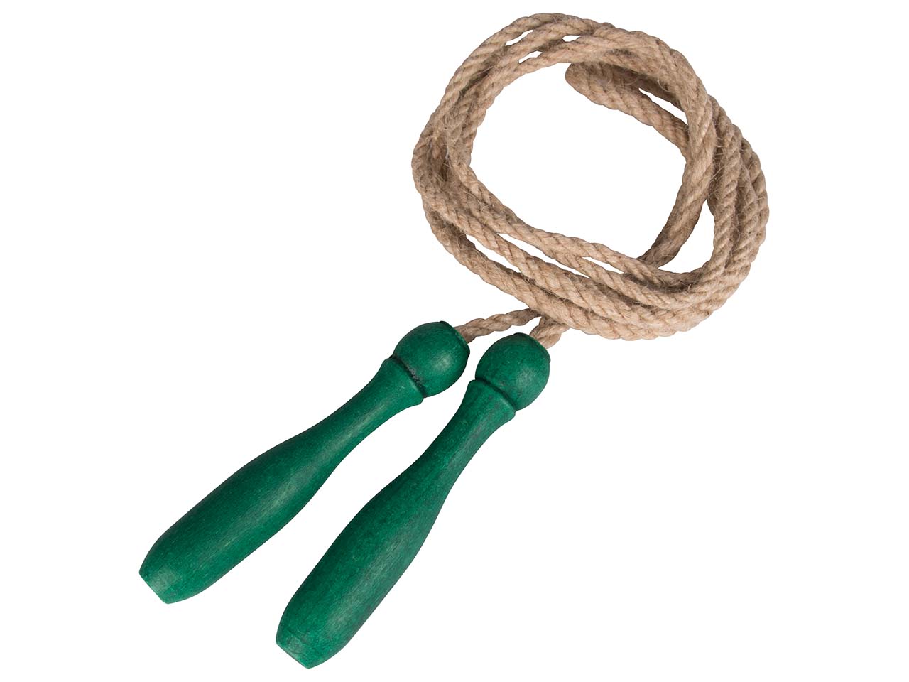 Ein echter Fitmacher, der obendrein Spaß macht: Springseil mit ergonomisch geformten Griffen aus gewachstem Buchenholz und stabilem Juteseil (verjüngt sich nach außen hin). Gesamtlänge 2,5 m. Griff grün.