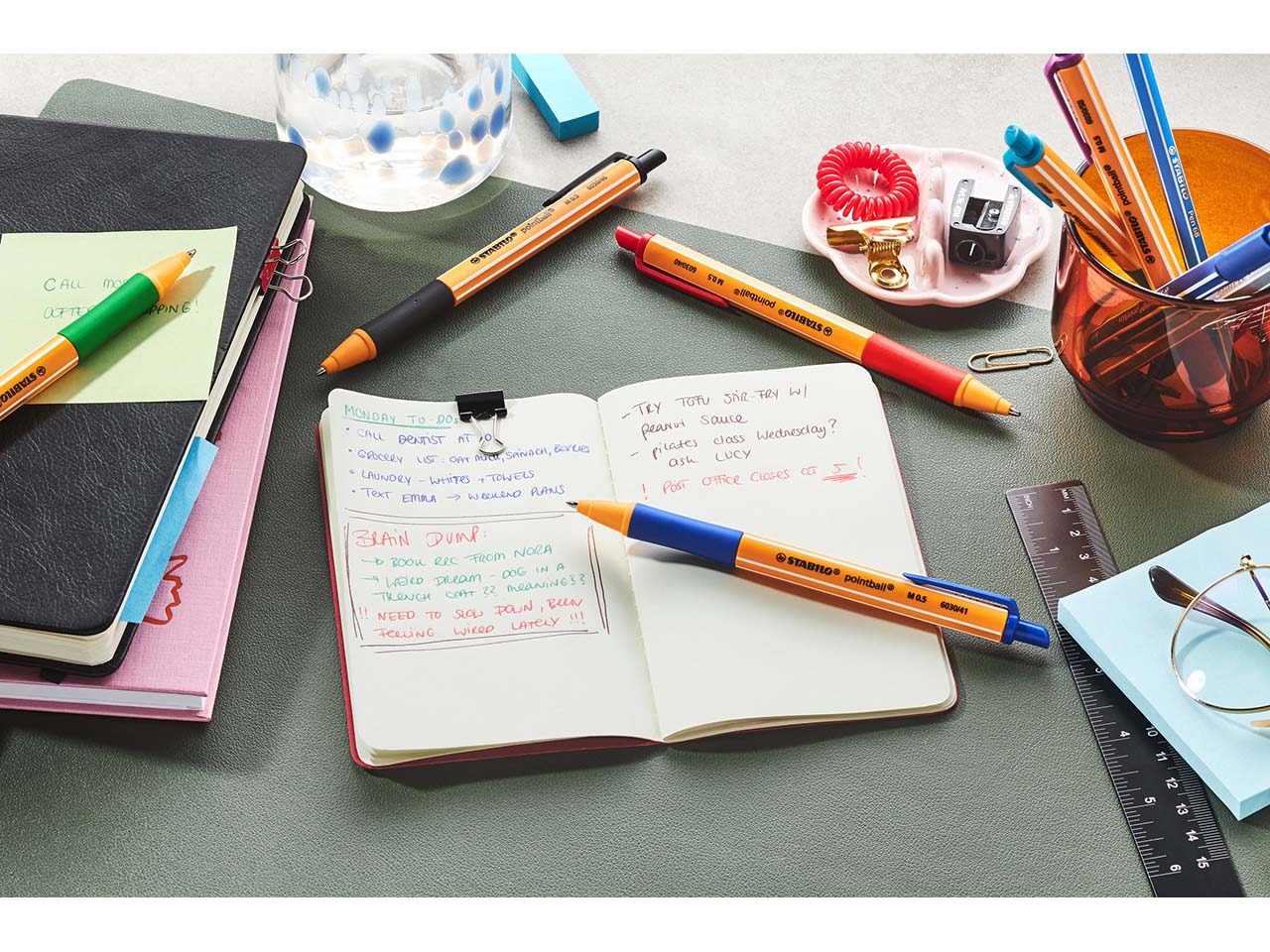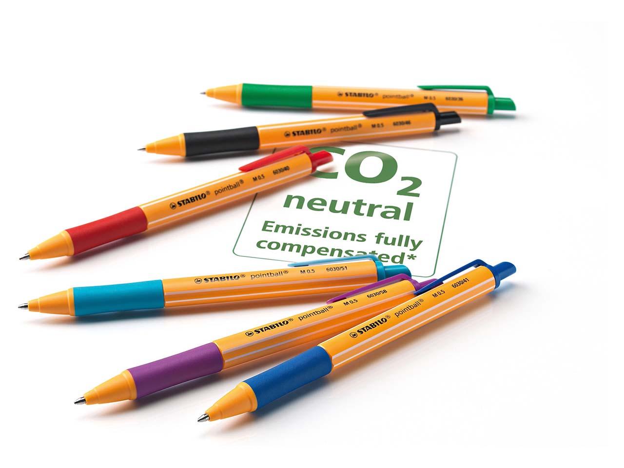 Der STABILO Kugelschreiber "pointball" bringt es genau auf den Punkt! Er ist ressourcenschonend hergestellt und überzeugt mit extrem weicher Kugelschreiberpaste für flüssiges, schnelles Schreiben (Strichstärke 0,5 mm), rutschfester Griffzone und Druckmechanik. Die Schreibfarben blau, schwarz und grün sind dokumentenecht nach ISO 12757-2. Nachfüllbar mit STABILO Ballpoint Refill.