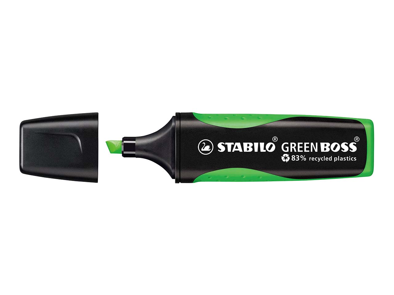 Der STABILO Textmarker "GREEN BOSS" ist farbintensiv, lichtecht und nachfüllbar. Die Tinte auf Wasserbasis ist geruchsarm, wasser- und wischfest. Rutschfeste Griffzone. Keilspitze mit Strichbreite 2 bis 5 mm. Bis zu 4 Stunden offenlagerfähig. Farbe grün.