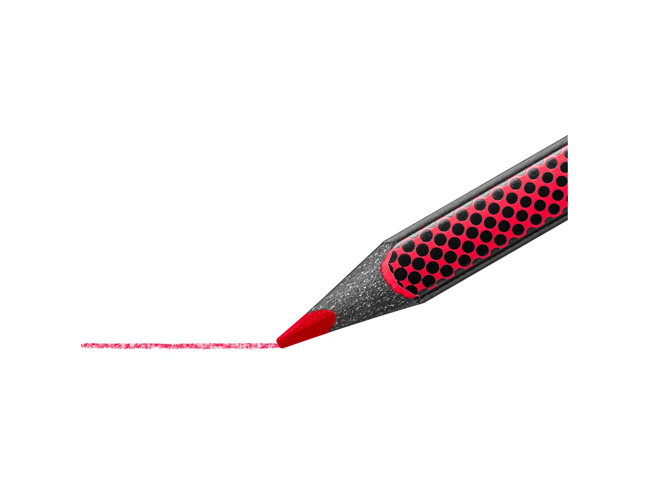 Mit diesen Buntstiften von STAEDTLER können Kinder ihrer Kreativität freien Lauf lassen! Die Stifte mit einzigartiger Form und rutschfester Soft-Oberfläche liegen hervorragend in der Hand und sorgen so für langanhaltenden Malspaß. Sie haben ein innovatives, schwarzes Design, wodurch sie besonders cool wirken. Die Buntstifte mit hoher Bruchfestigkeit haben eine intensive Farbabgabe und eignen sich für alle Papiersorten. Hergestellt werden die Stifte aus upgecycelten Holzspänen, die bei Säge- und Planungsprozessen in der Holzindustrie anfallen. Das macht die Buntstifte in PEFC-zertifizierter Qualität im Vergleich zu anderen Produkten umweltverträglicher. Inhalt 12 Buntstifte, farbig sortiert.